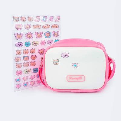 Bolsa Tiracolo Infantil Pampili com Adesivos Branco Rosa