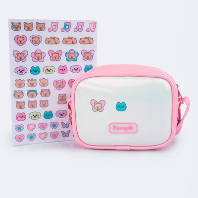 Bolsa Tiracolo Infantil Pampili com Adesivos Branco Rosa Claro