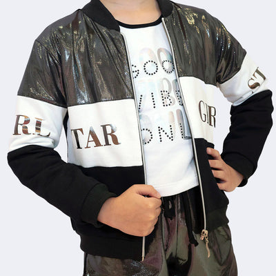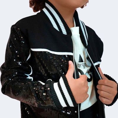 Jaqueta Infantil Feminina Bomber Paetê Preta