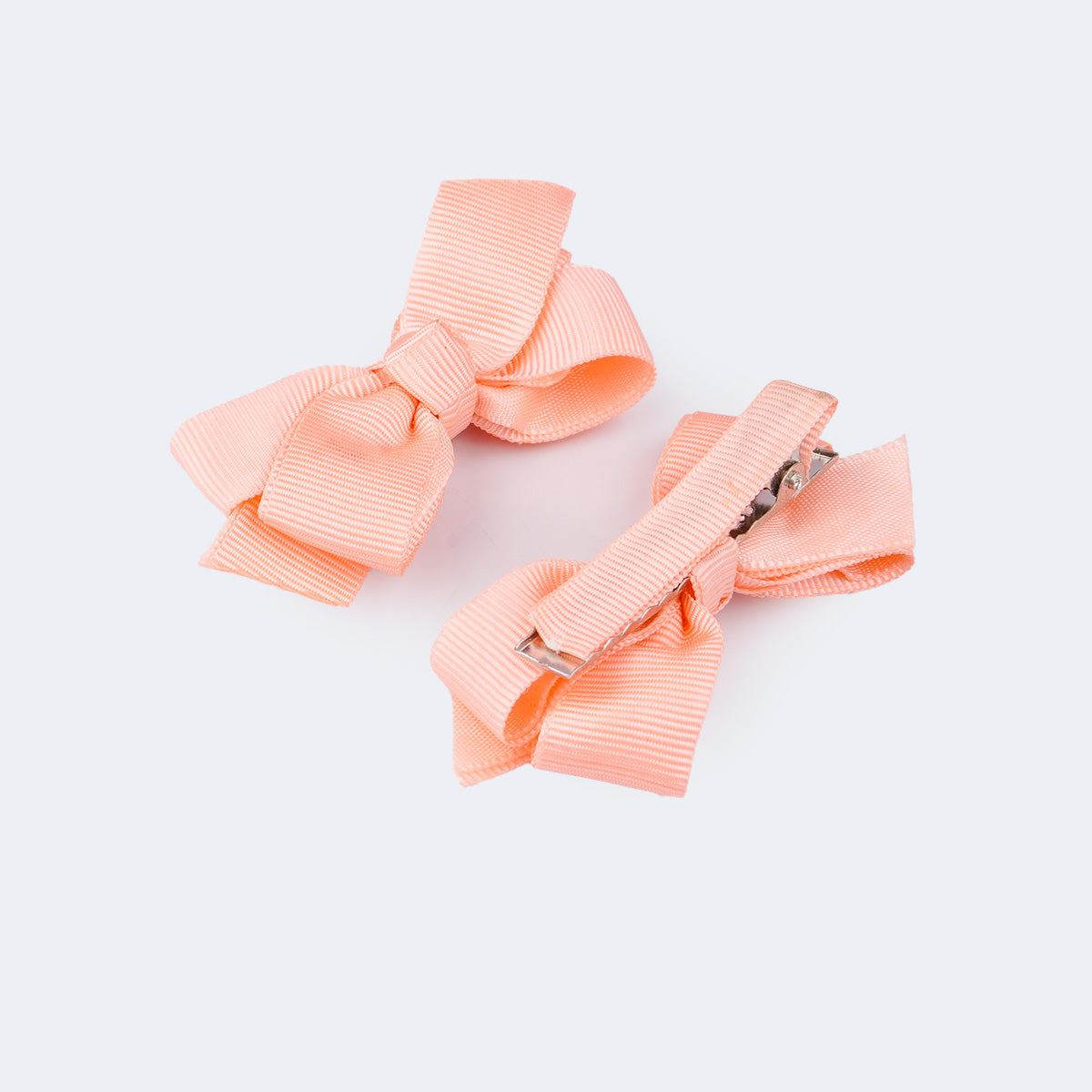 Kit com 2 presilhas de cabelo infantil com laço de fita salmão, delicada para os penteados! O par de presilhas conta com bico de pato em metal resistente encapado, que facilita o uso, aumenta o conforto e mantém o acessório bem firme no cabelo.
