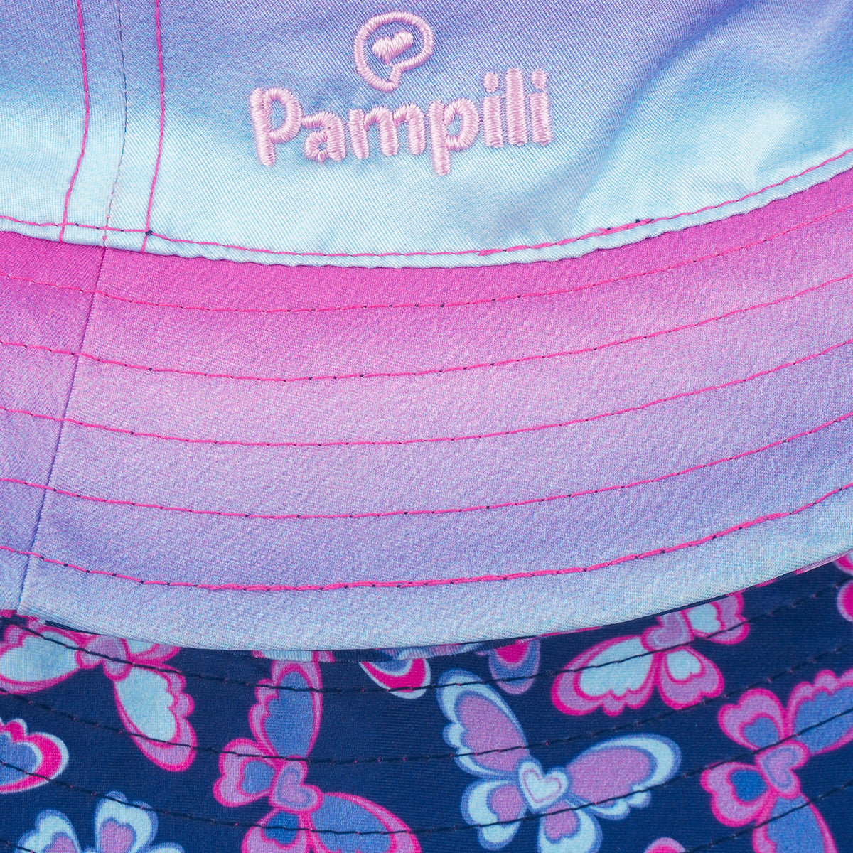 O bucket hat infantil é o acessório perfeito para deixar os dias de sol ainda mais estilosos. Com design dupla face, oferece duas opções encantadoras: um lado com estampa de borboletas coloridas e outro em degradê candy, permitindo criar diferentes combinações em um só produto!