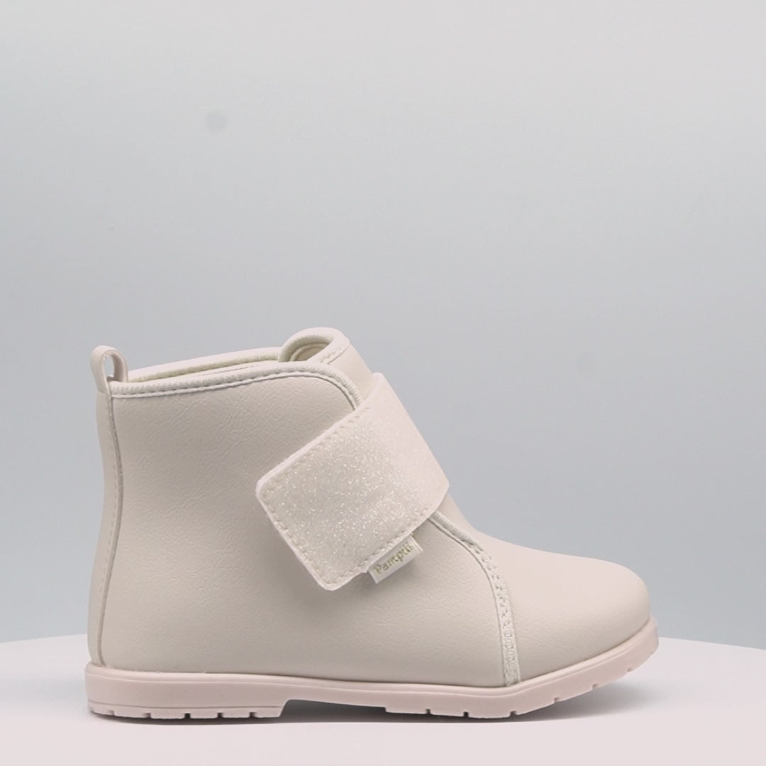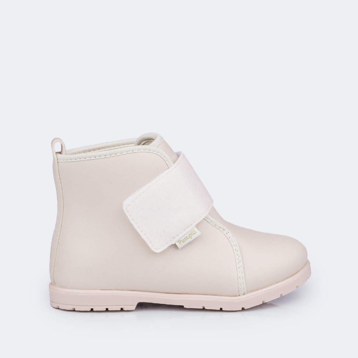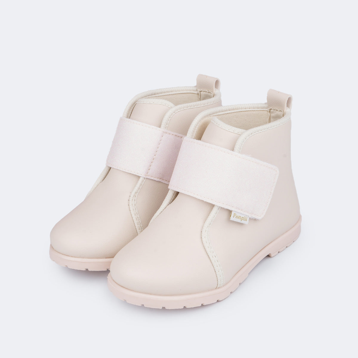 Bota infantil cano médio em sintético nude, um modelo moderno com muito estilo, do jeito que as meninas amam! Detalhe de tira em glitter e etiqueta lateral Pampili, dando autenticidade ao calçado. Bota feminina com forro interno que auxilia na absorção do suor. Palmilha Feet Care que possui um sistema avançado de fofura, com a densidade ideal para os pés, minimizando impactos. Bota infantil com solado em TR, que apresenta muita aderência e estabilidade, além da flexibilidade, resistência térmica e alto desempenho. Fechamento em tira aderente frontal, facilitando o calce para a mamãe!