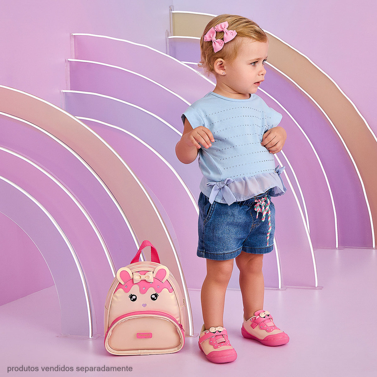 Camiseta Infantil Pampili com Laços e Brilho Azul Claro