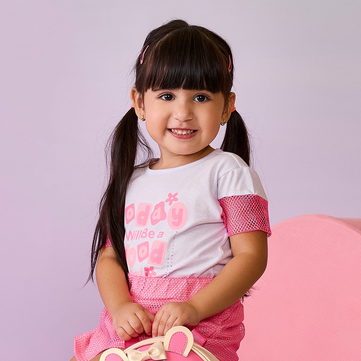 Aposte! Use com shorts leves e acessórios de cabelo rosa ou coloridos para um visual encantador. Combine com sandália ou tênis Pampili para completar o look!