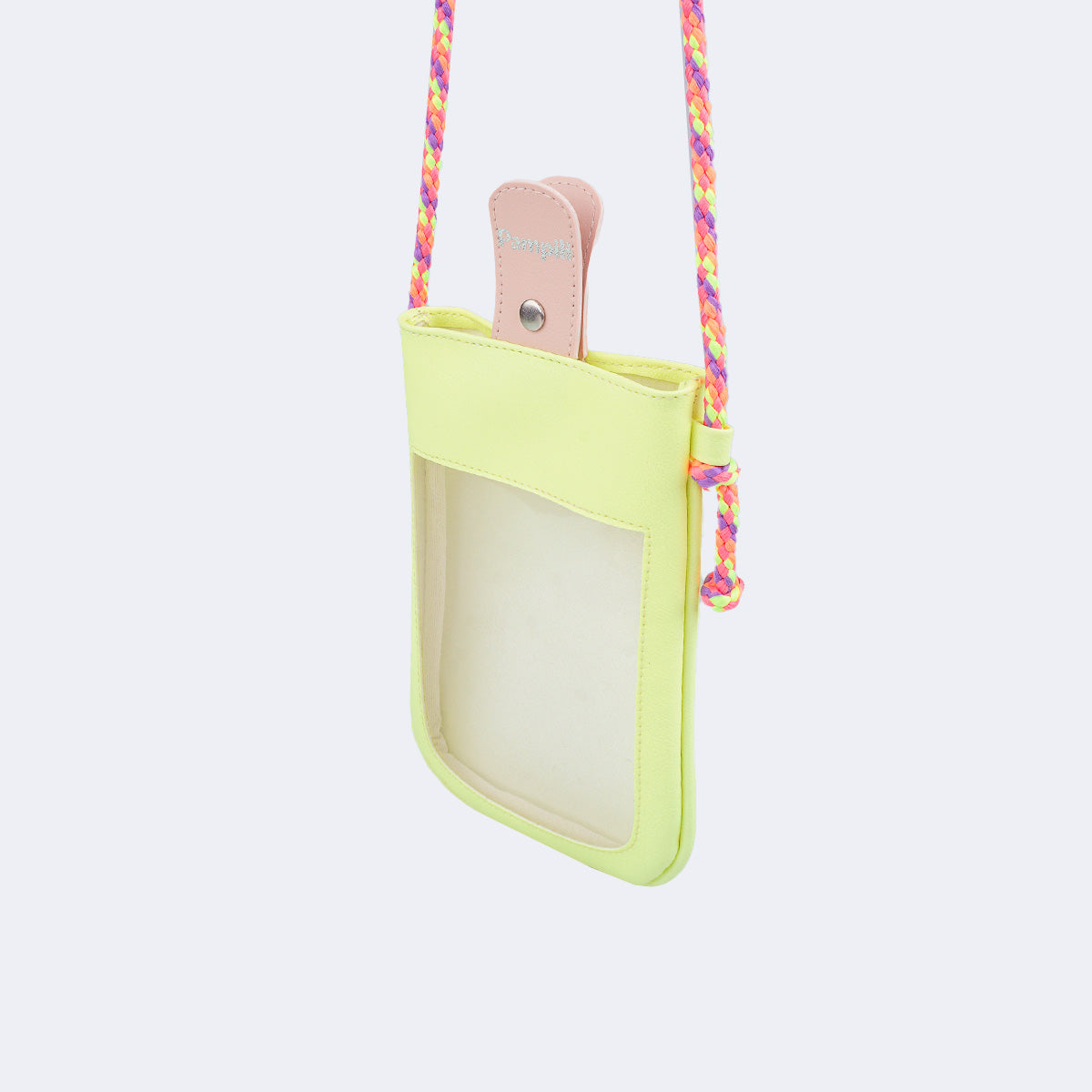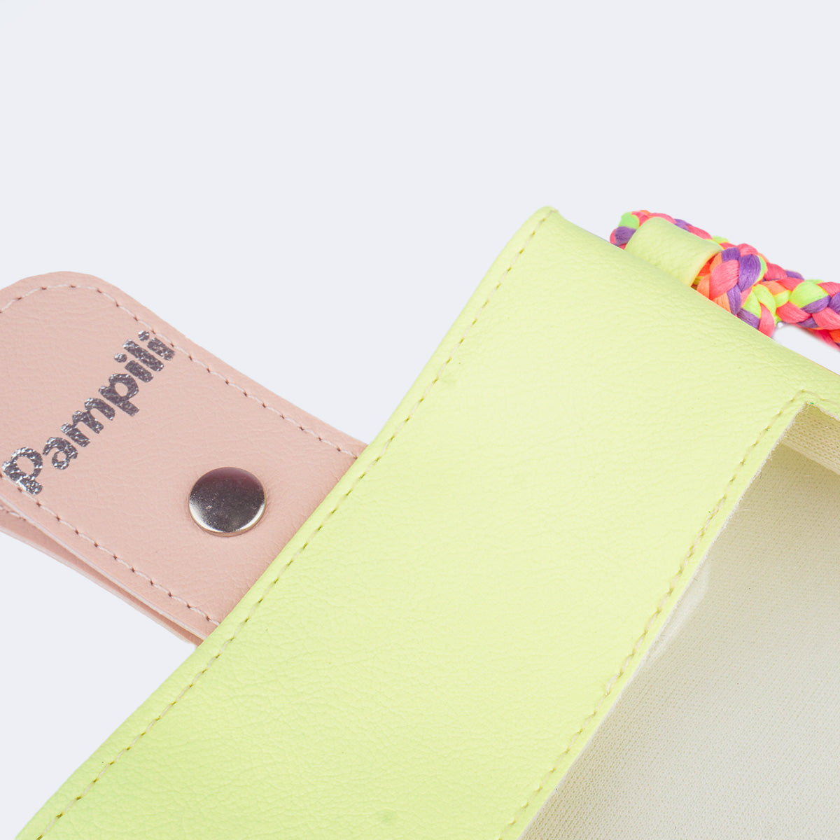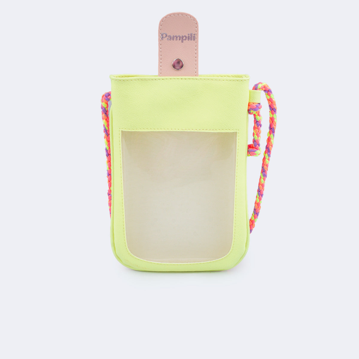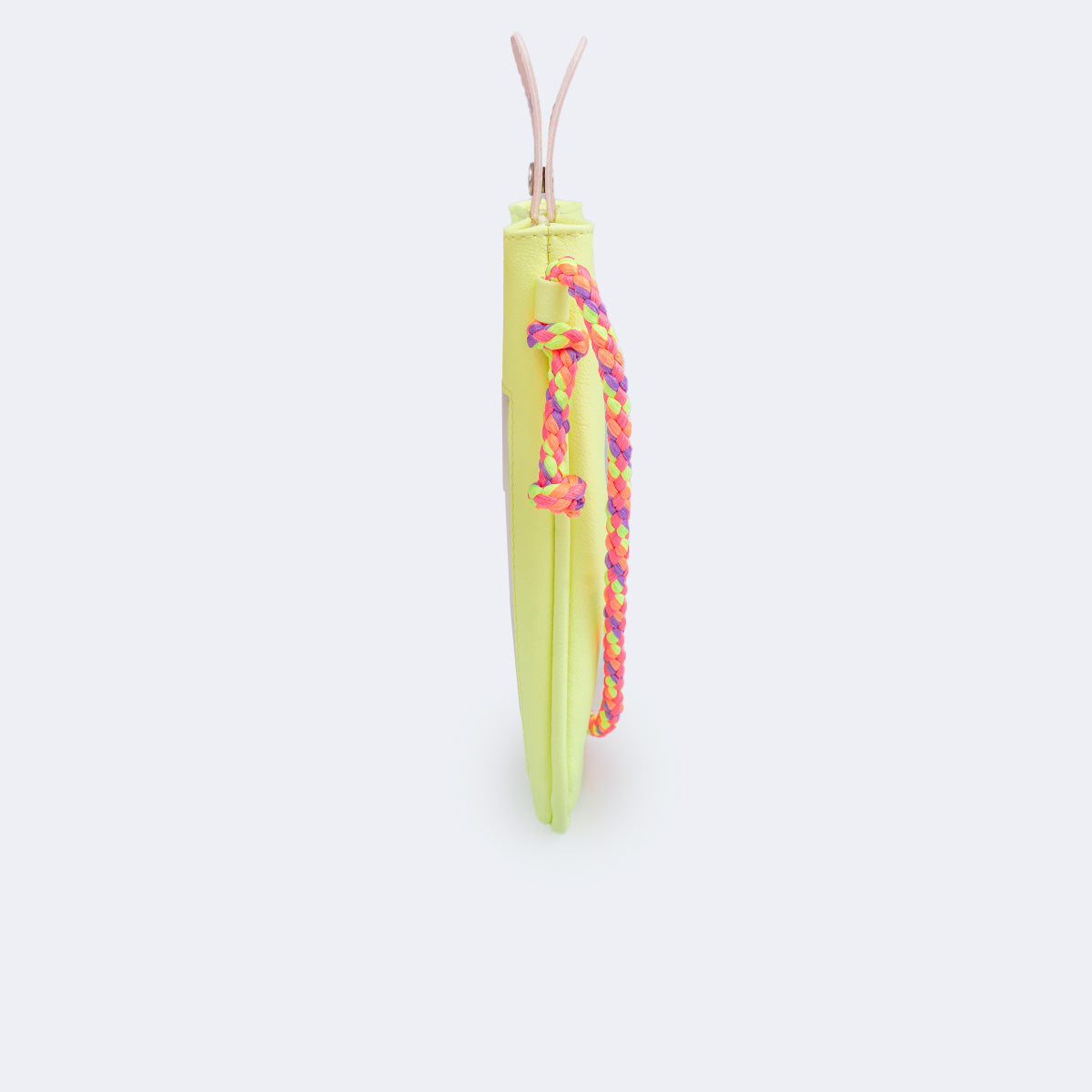 Perfeita para as meninas que amam acessórios cheios de cor e personalidade, esta bolsa é um verdadeiro destaque da nova coleção! O tom amarelo claro e a alça em corda trançada colorida deixam o visual moderno e divertido, acompanhando o ritmo leve e cheio de energia da infância.