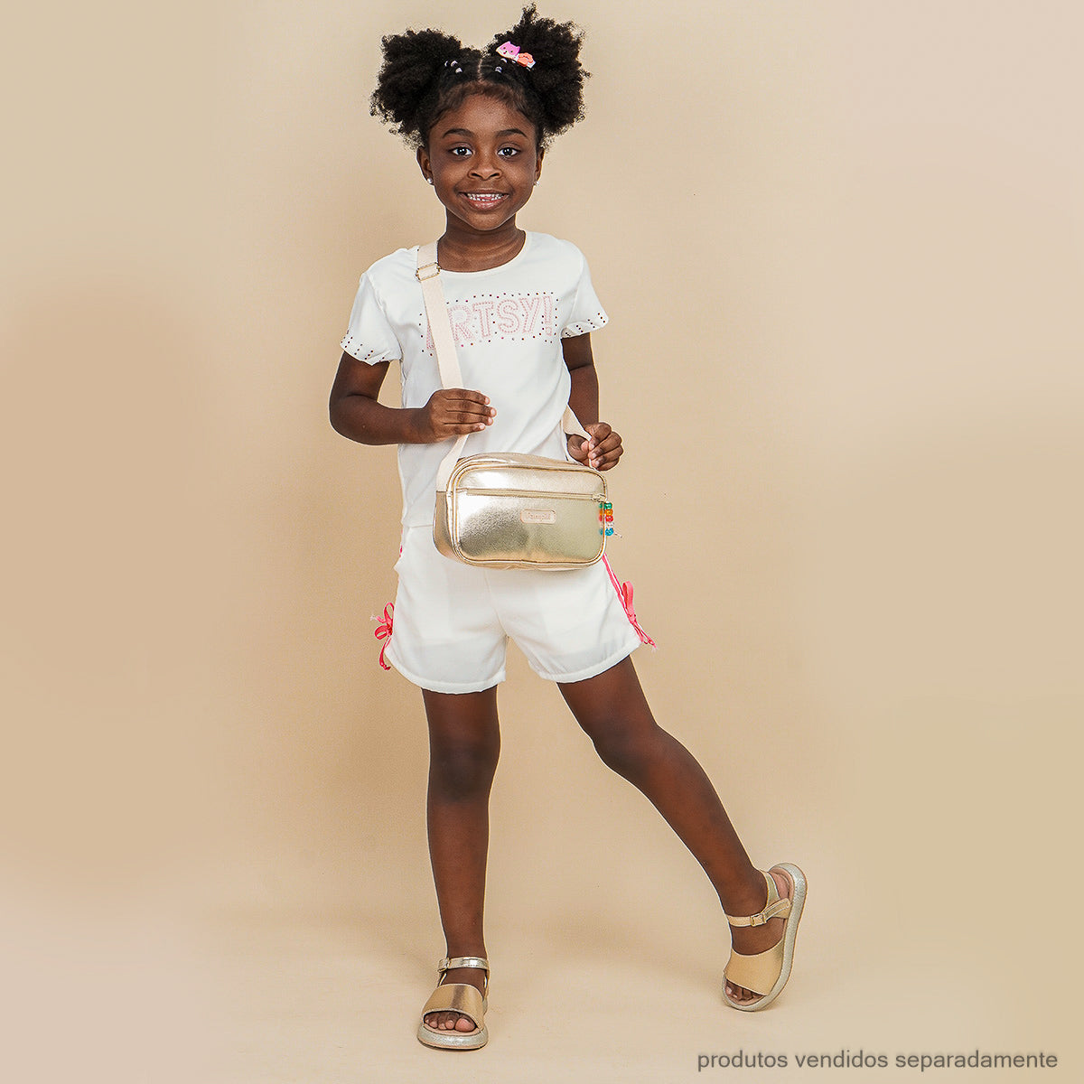 Para as meninas cheias de atitude e estilo, essa bolsa tiracolo traz um visual moderno e super prático! Com acabamento metalizado dourado, ela se destaca pelo brilho intenso, perfeito para compor looks despojados em qualquer ocasião. O modelo conta com alça larga regulável, que garante conforto ao usar no ombro ou na transversal. O bolso frontal com fecho de correr adiciona funcionalidade, ideal para guardar pequenos objetos com segurança.
