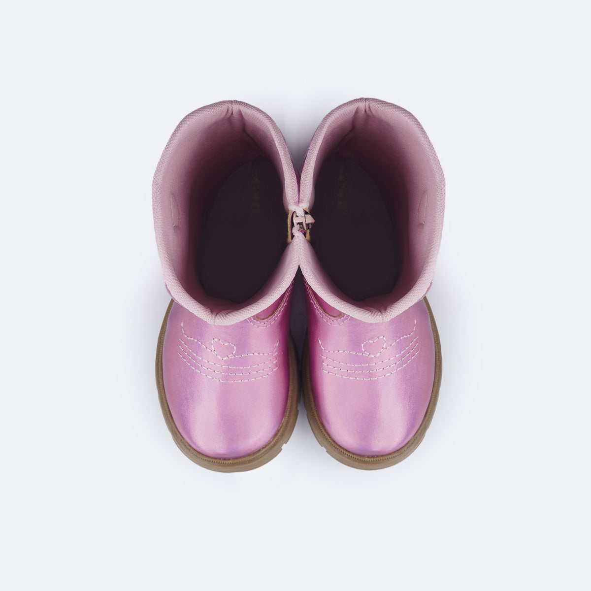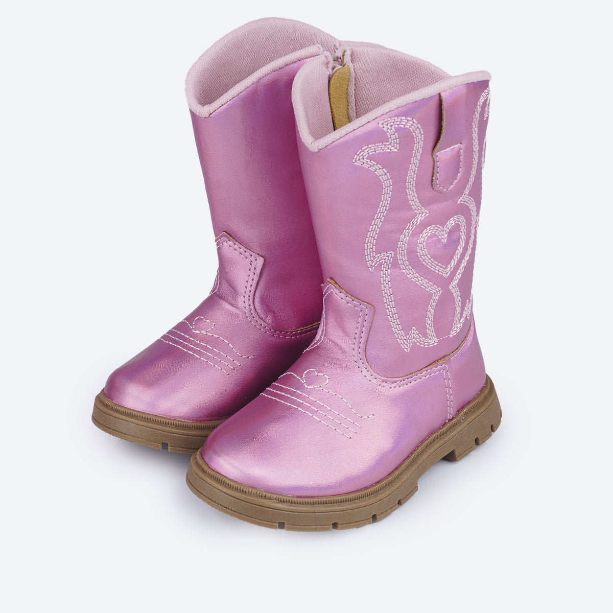 Bota Infantil Feminina Annie Western Rosa Metalizado