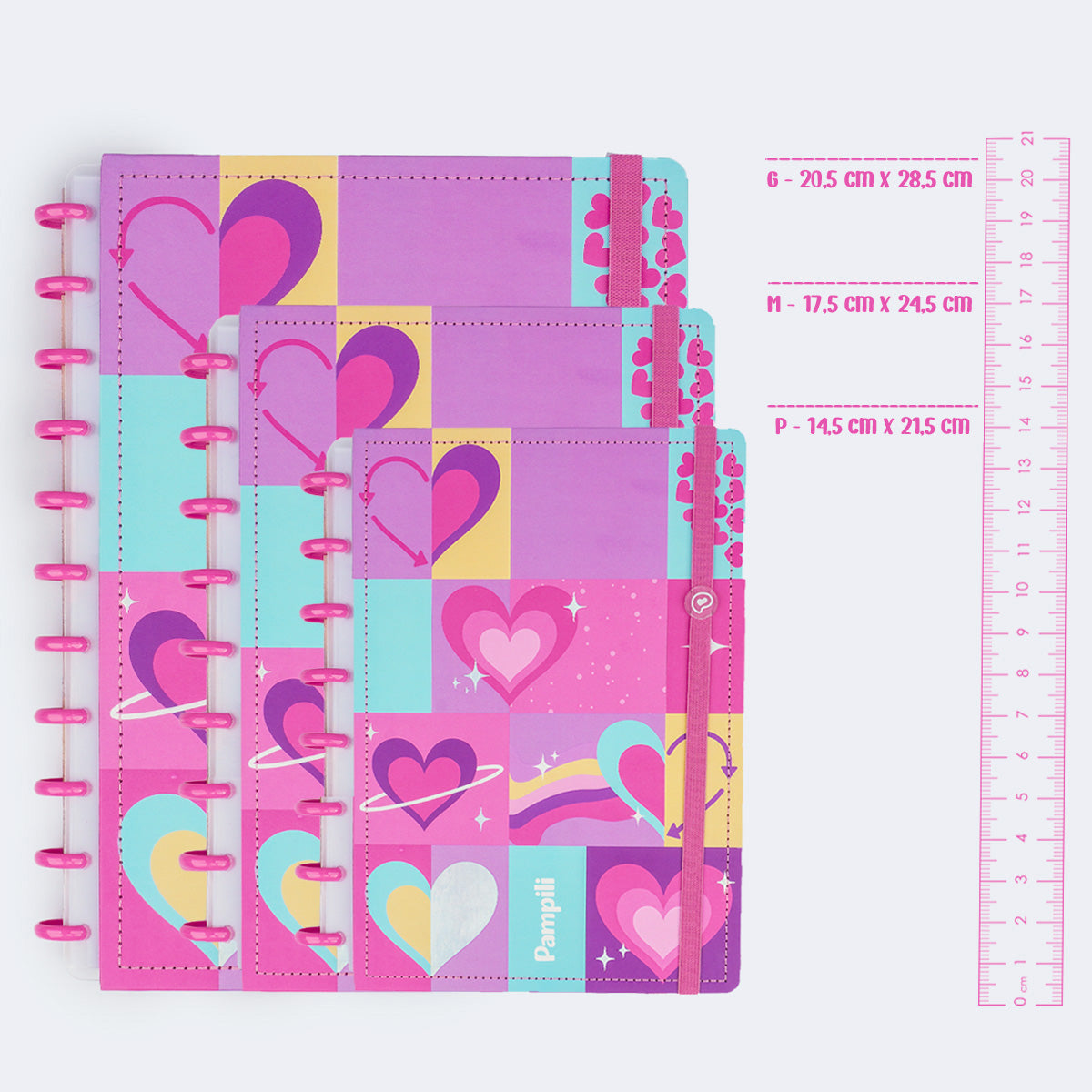 Caderno de Disco Inteligente Grande Pampili Corações Pink