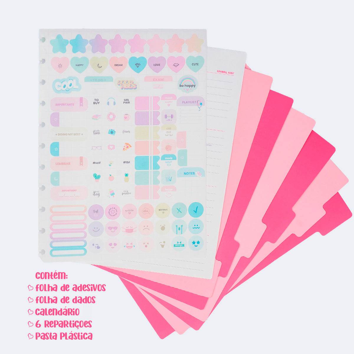 Esse caderno de disco foi criado para acompanhar a rotina escolar das meninas com muita cor, organização e criatividade. A capa dura, cheia de detalhes e com impressão em alta definição, possui cantos arredondados, acabamento costurado e fechamento em elástico, garantindo que cada anotação seja guardada com carinho e cuidado.