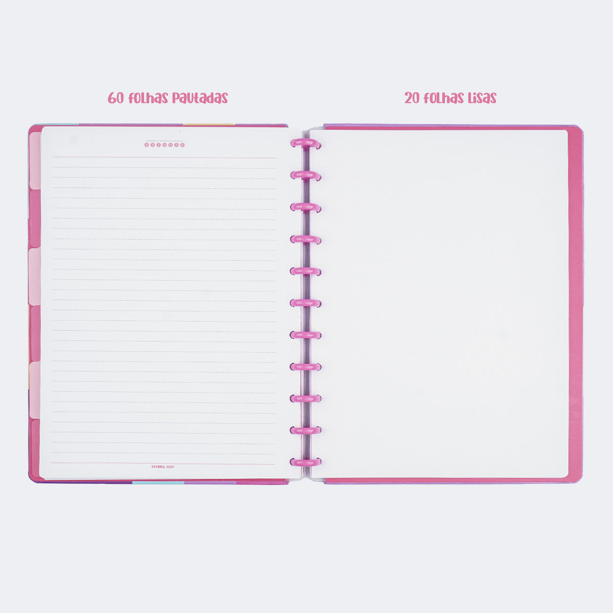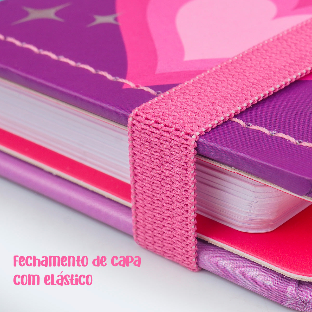 Esse caderno de disco foi criado para acompanhar a rotina escolar das meninas com muita cor, organização e criatividade. A capa dura, cheia de detalhes e com impressão em alta definição, possui cantos arredondados, acabamento costurado e fechamento em elástico, garantindo que cada anotação seja guardada com carinho e cuidado.