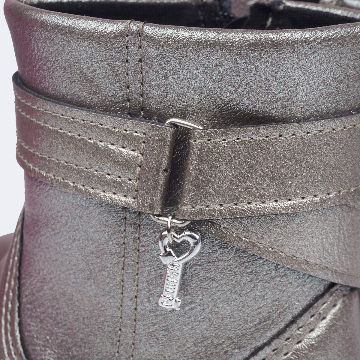 Com visual cheio de charme, essa bota infantil grafite traz um design moderninho e atemporal com mini pingente de chave, combinando com tudo. O material de fácil limpeza junto com o fechamento em zíper garantem praticidade e autonomia para o dia a dia.