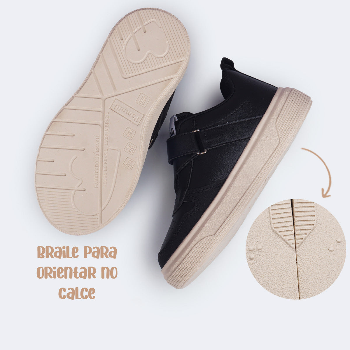 Pensado para oferecer conforto em cada passo, esse tênis infantil conta com colarinho comfy, forro absorvente, palmilha anatômica Feet Care com amortecimento inteligente e solado antiderrapante com descrição em braile, promovendo inclusão e segurança. Um modelo versátil, fácil de limpar e ideal para acompanhar a rotina escolar e os momentos de lazer da menina.