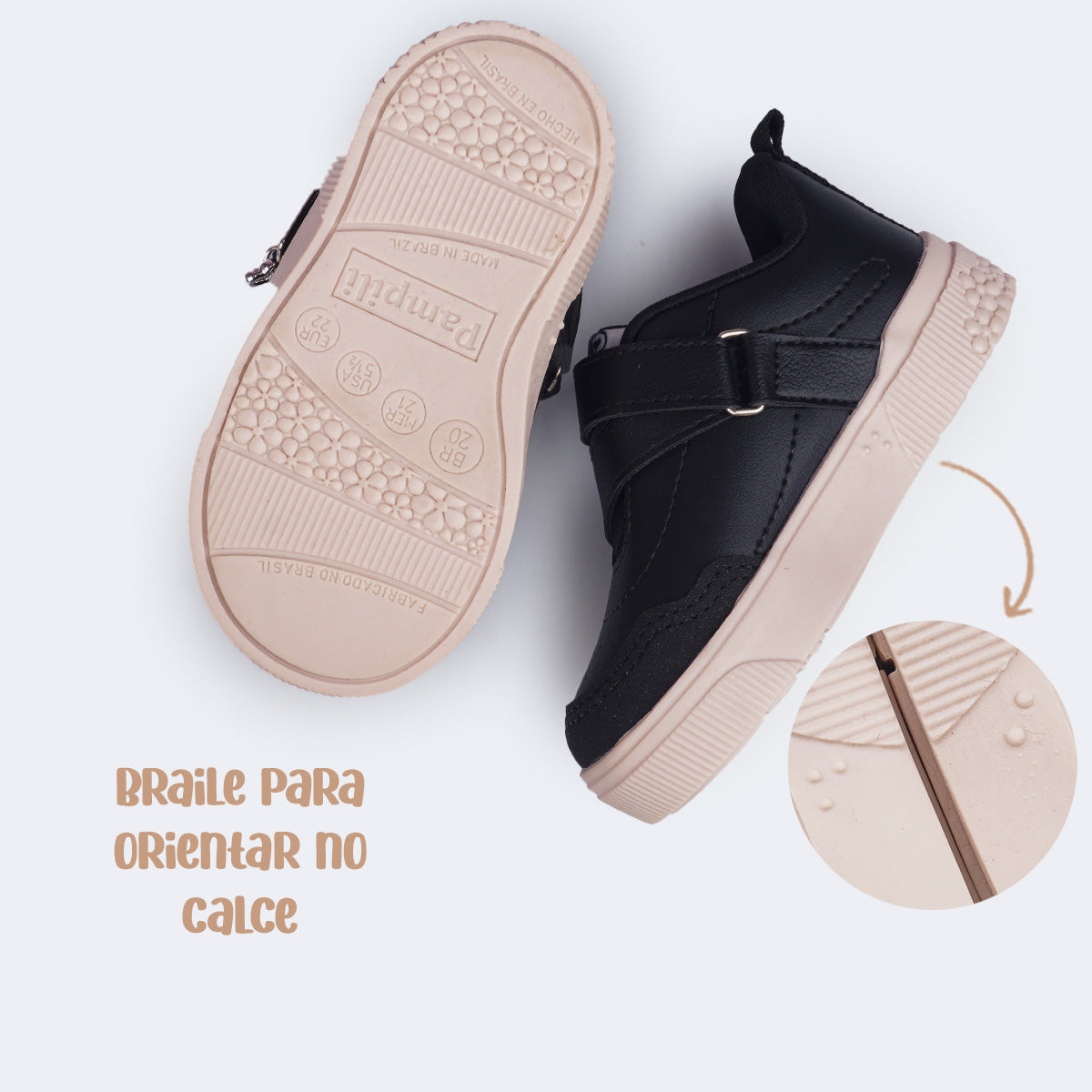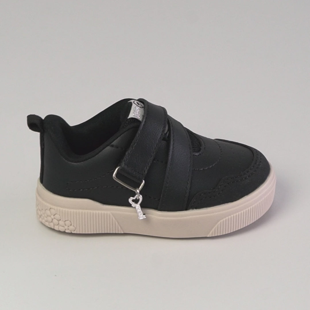 O design casual preto é super moderninho, fácil de combinar e simples de limpar, ideal para a rotina da menina. O fechamento em fita aderente facilita o calce, enquanto o colarinho macio, o forro absorvente e a palmilha anatômica proporcionam bem-estar ao longo do uso. O solado antiderrapante oferece estabilidade e segurança desde os primeiros passos.