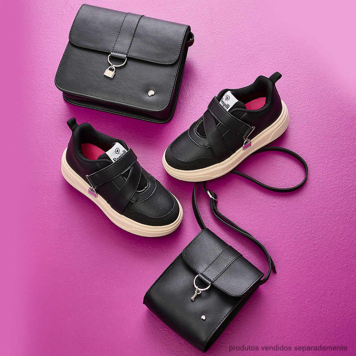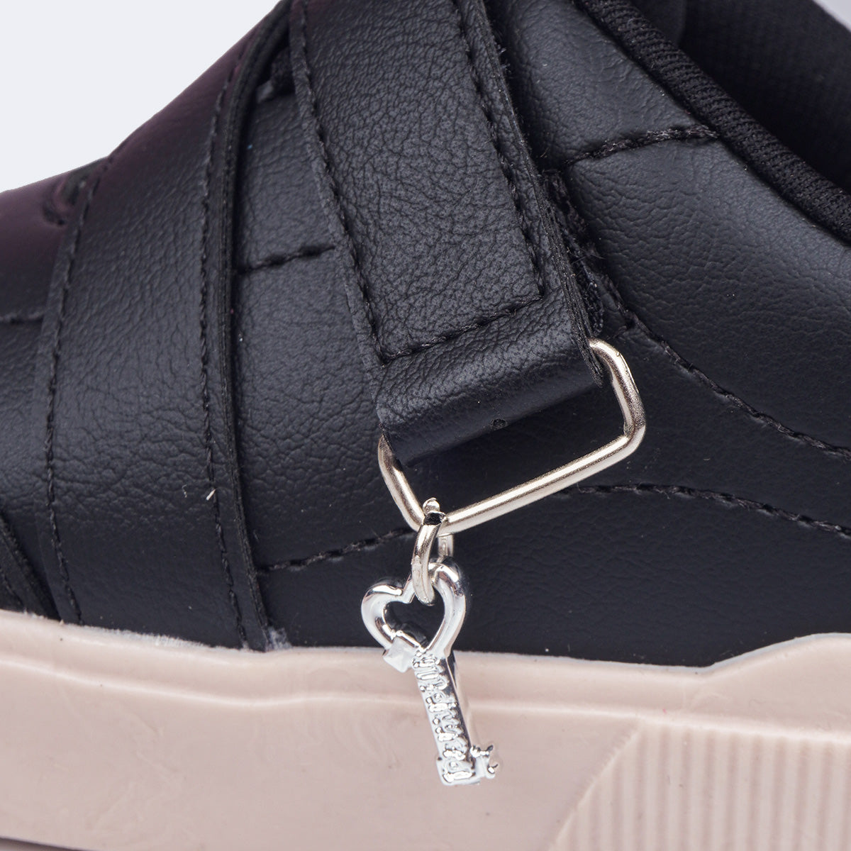 Tênis casual da coleção Tal Mãe, Tal Filha, criada para celebrar o vínculo especial entre mãe e menina desde os primeiros passos. O detalhe da chave metálica traz um significado afetivo e simbólico, representando proteção, cuidado e a conexão que acompanha a menina em cada descoberta.