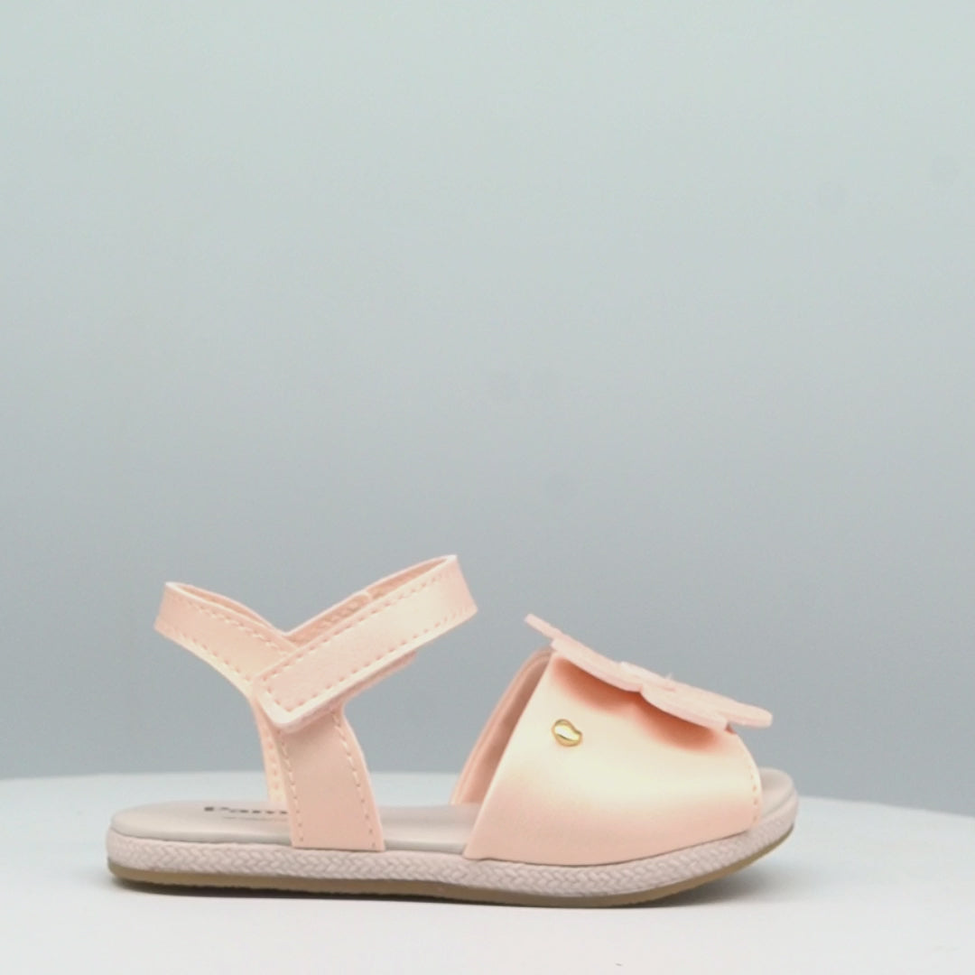 A delicadeza do universo infantil em forma de sandália! Essa mini espadrille cor pêssego com brilho perolado suave e aplicação de flor, encanta por sua delicadeza. Sandália leve, casual e versátil, um modelo curinga para o guarda-roupa da pequena.