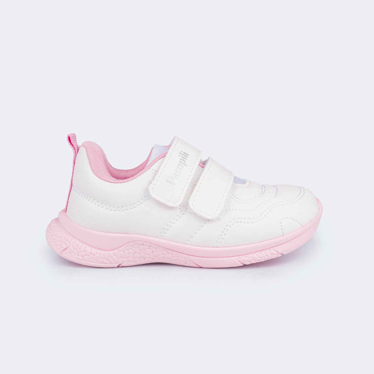 Leve e flexível, este tênis infantil une praticidade e conforto em um design prático. O modelo combina as cores branco e rosa, trazendo um visual perfeito para todas as ocasiões — da escola aos passeios em família.