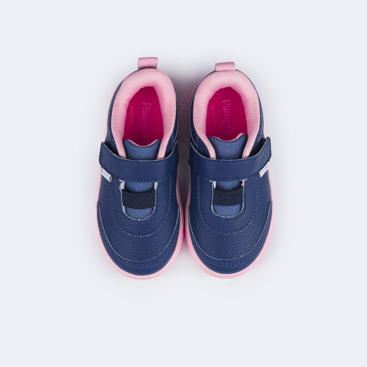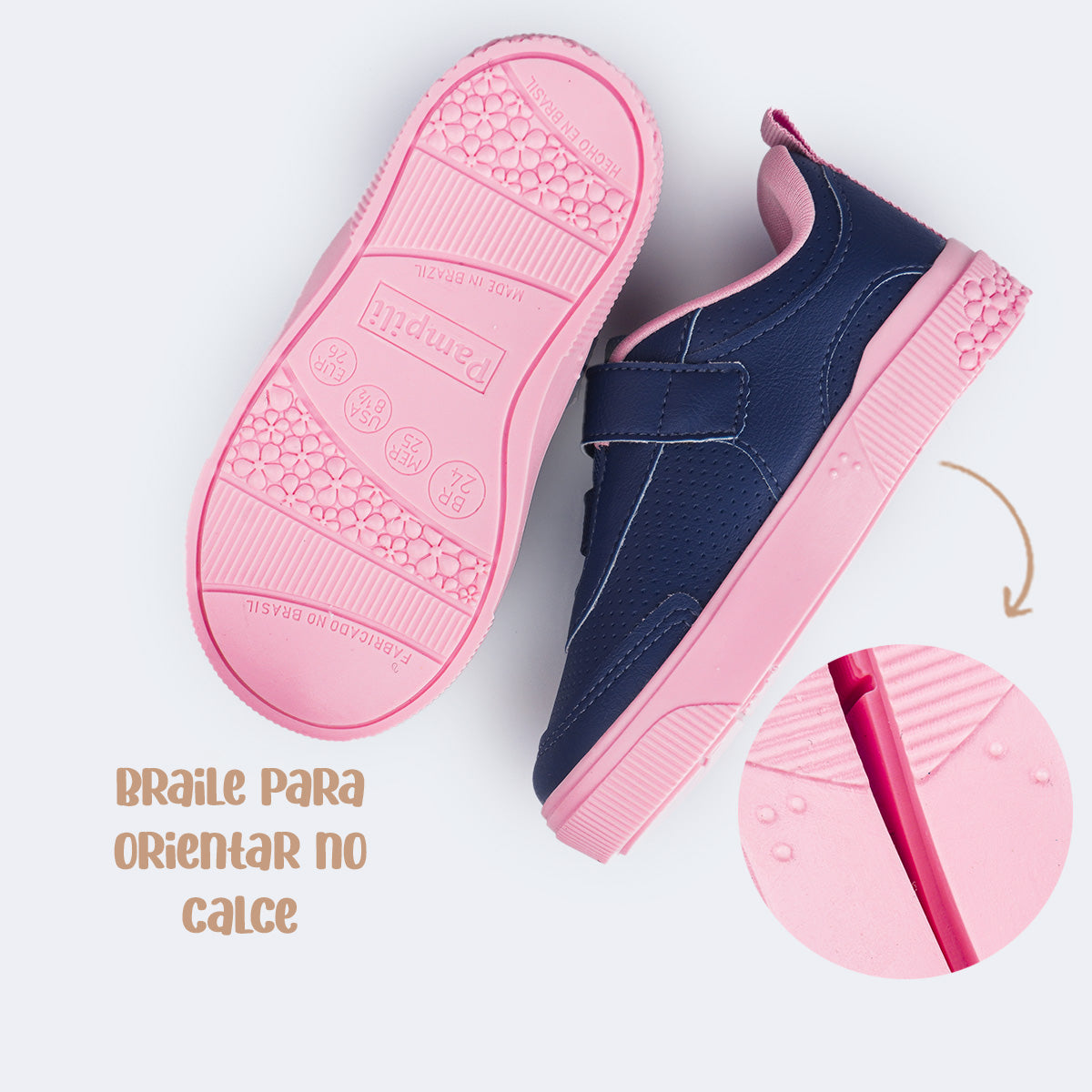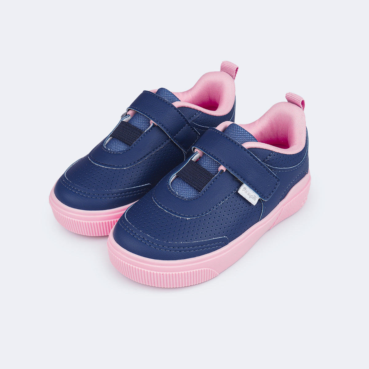 Pensado para acompanhar a rotina das meninas, este tênis infantil azul marinho com rosa claro une praticidade, resistência e o visual clássico que combina com tudo.