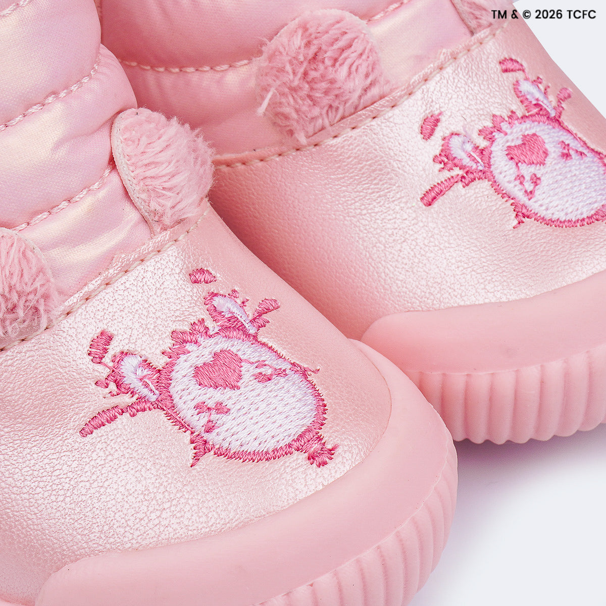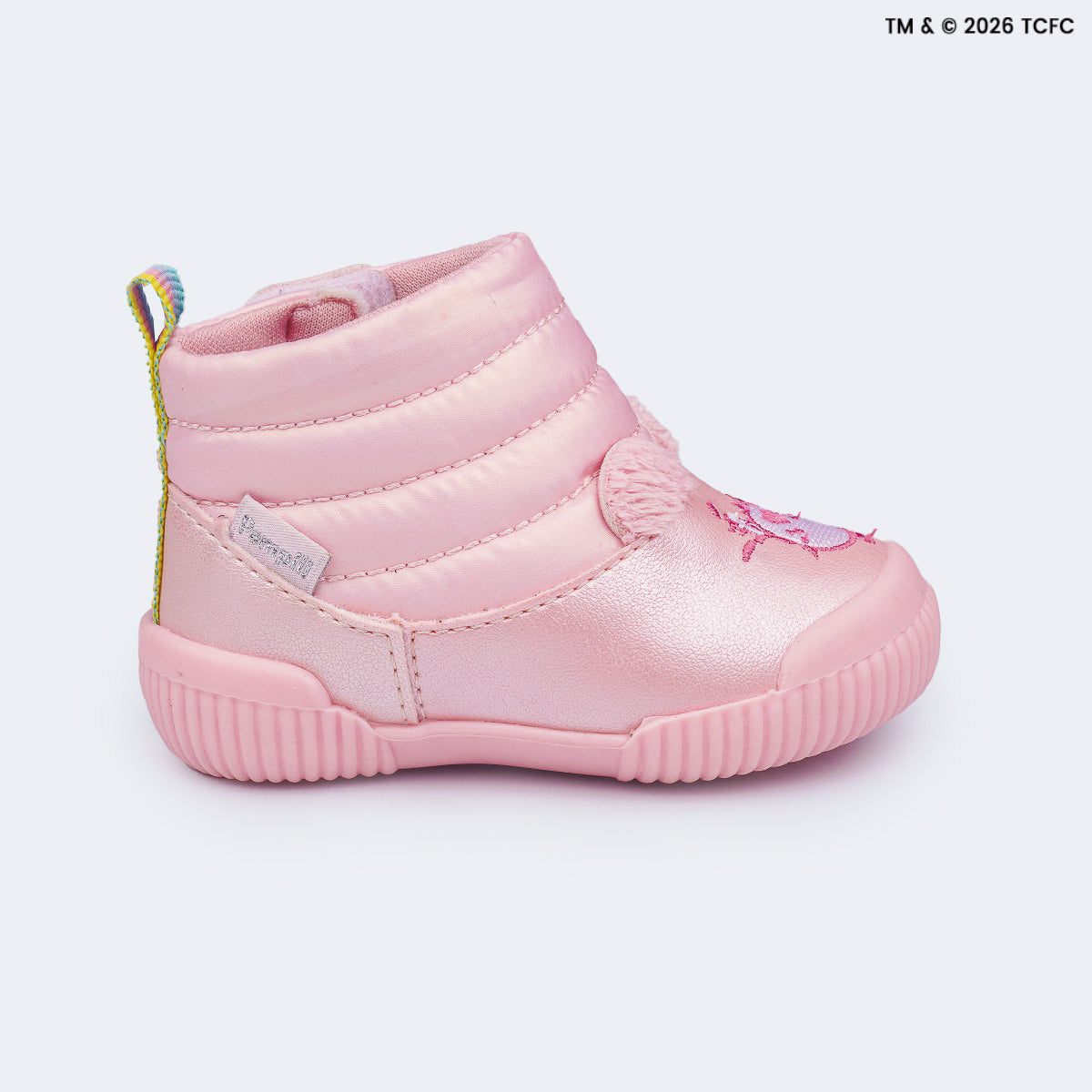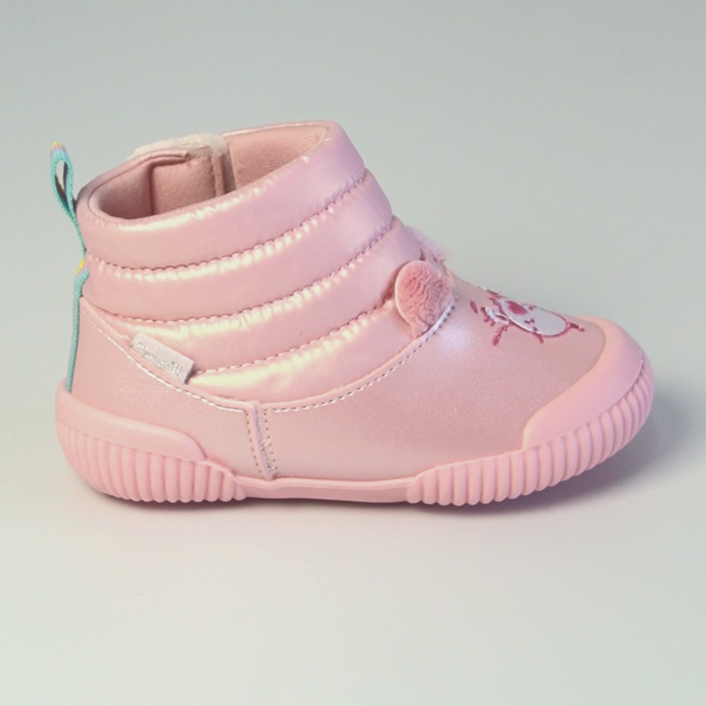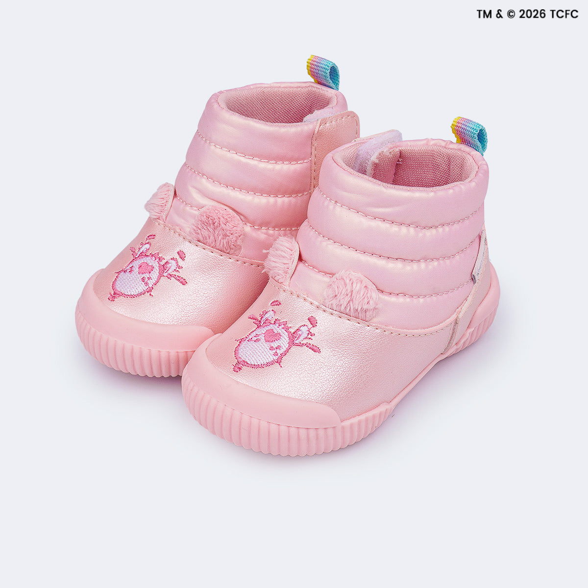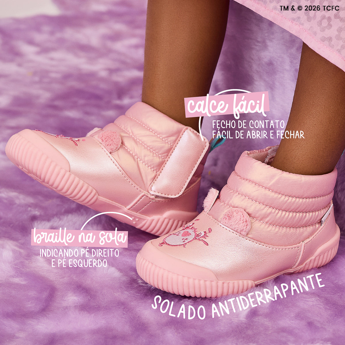 Com visual delicado, essa botinha para bebê rosa perolada é perfeita para a menina desde o nascimento. O modelo traz a ursinha Carinhosa com carinha bordada e orelhinhas de pelúcia em alto relevo, além de material comfy super macio, forro que absorve o suor e palmilha anatômica respeitando o formato dos pezinhos. O solado antiderrapante, leve e flexível, é perfeito para nossas bebês, garantindo conforto, segurança e liberdade para acompanhar a menina desde o nascimento até os primeiros passinhos.