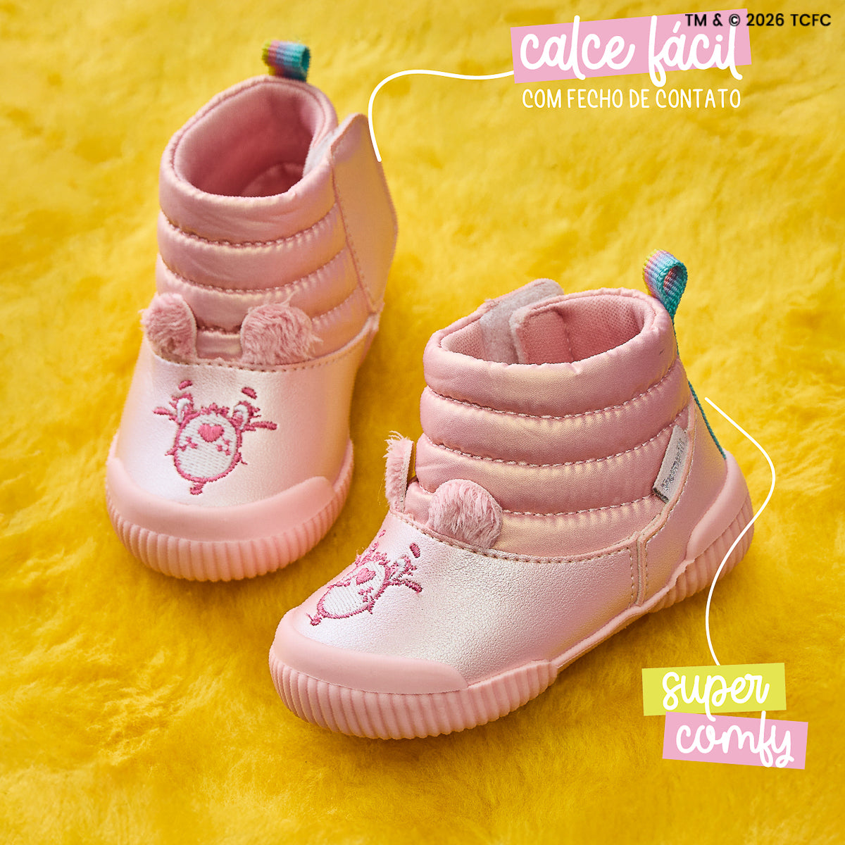 A coleção oficial Pampili + Ursinhos Carinhosos traz de volta personagens que marcaram a infância de muitas gerações em uma linha exclusiva de calçados e acessórios que conectam pais e filhas em histórias repletas de amor, amizade e ternura. Com cores alegres, símbolos nostálgicos e detalhes vibrantes, une conforto, diversão e estilo. Uma linha única para compartilhar memórias e criar novos momentos cheios de afeto.