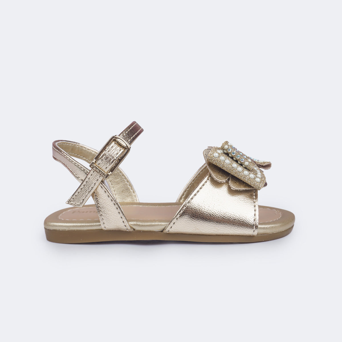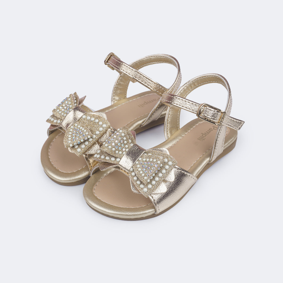 Sandália Infantil Primeiros Passos Pampili Mili Laço com Glitter Dourada