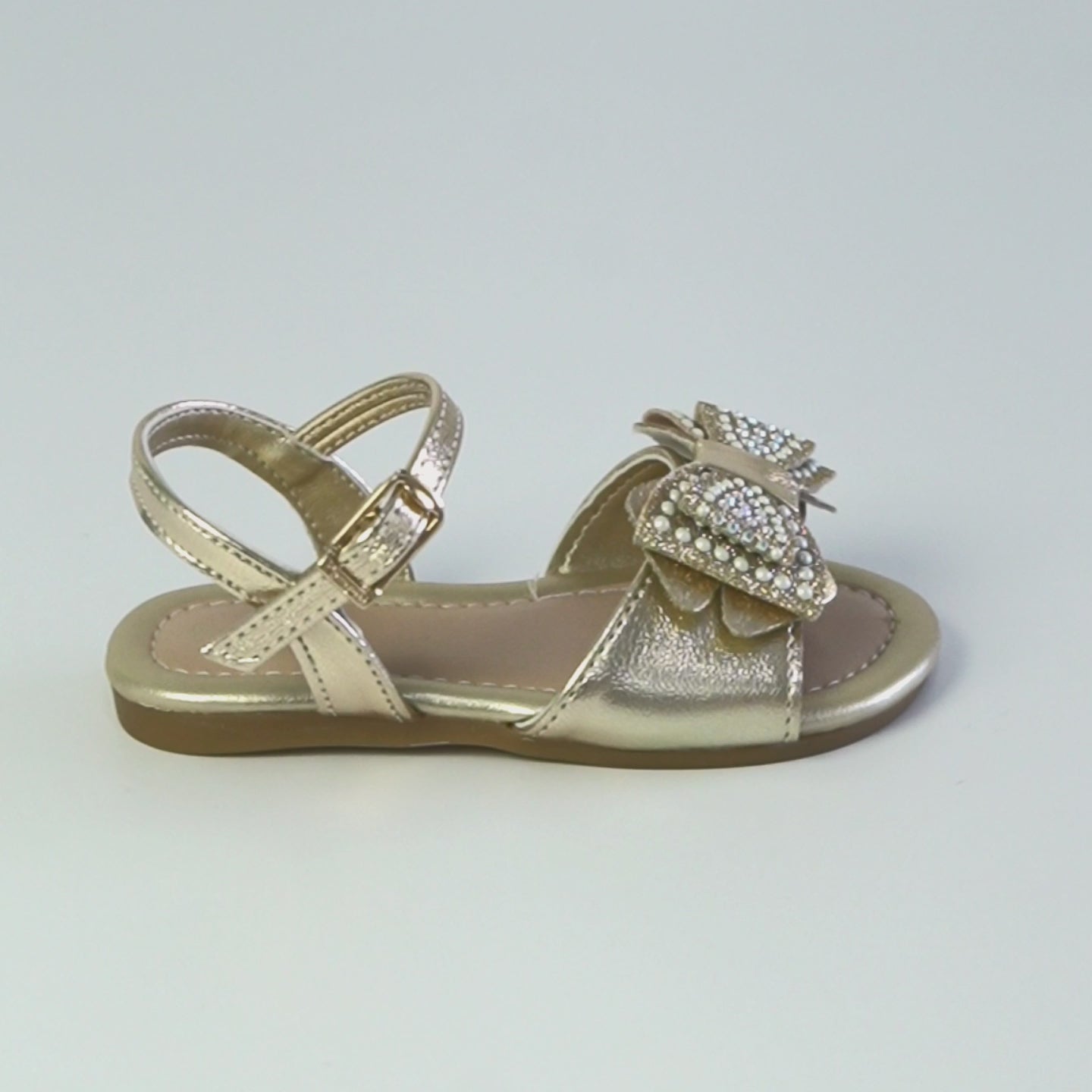 Essa sandália infantil dourada é a escolha perfeita para celebrar momentos especiais com delicadeza e conforto nos primeiros passos da menina. O tom metalizado e o laço com glitter e detalhes em strass adicionam um toque encantador, ideal para celebrações, aniversários e ocasiões cheias de significado.