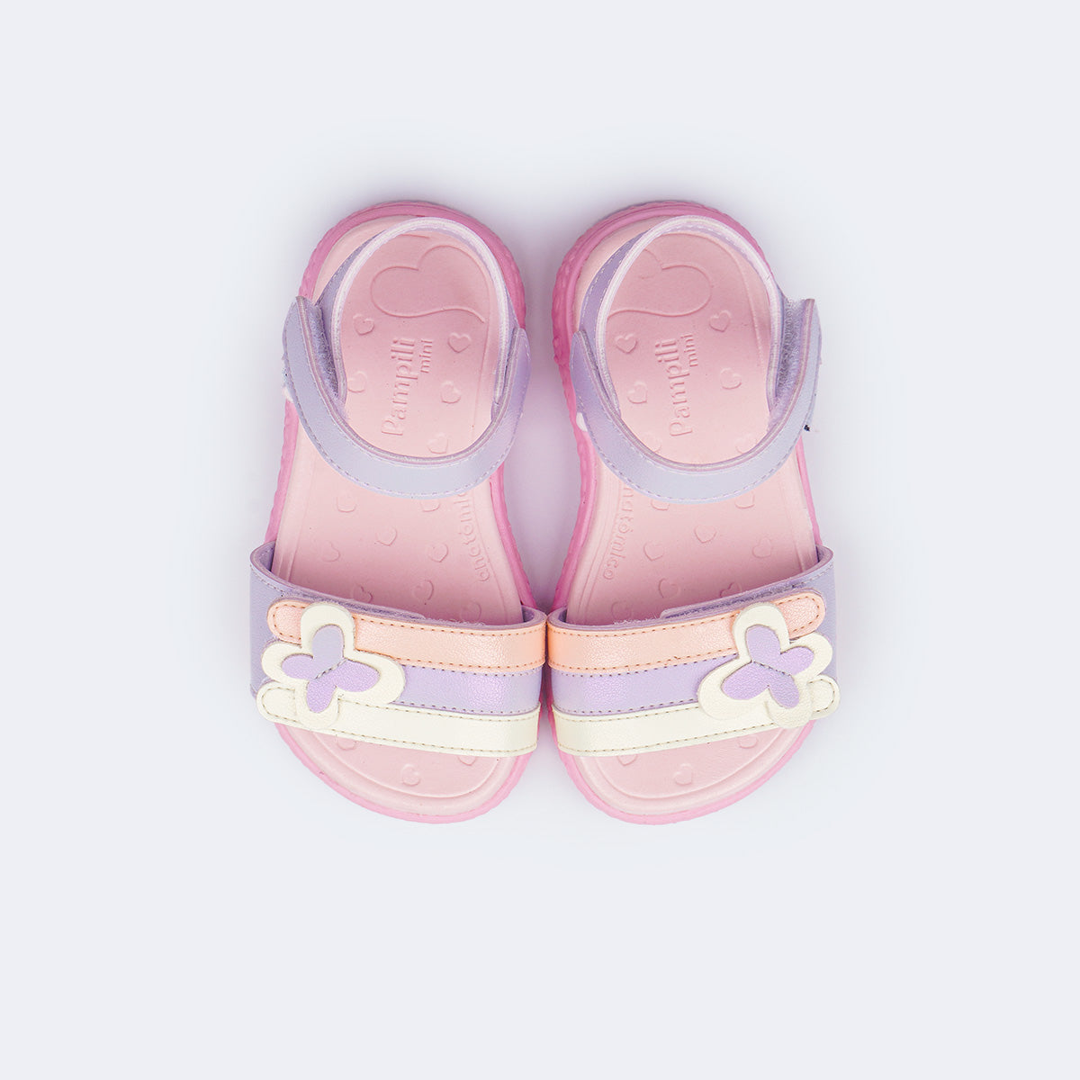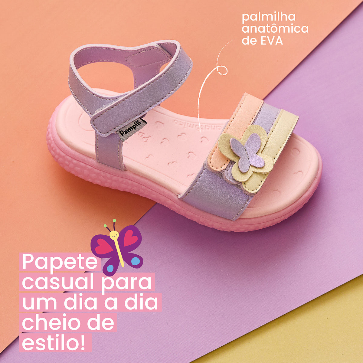 Ideal para acompanhar a menina desde os primeiros passos, essa sandália infantil une leveza, flexibilidade e um visual delicado para o dia a dia. O tom lavanda com detalhes coloridos traz alegria ao design, enquanto o estilo papete garante conforto e casualidade.