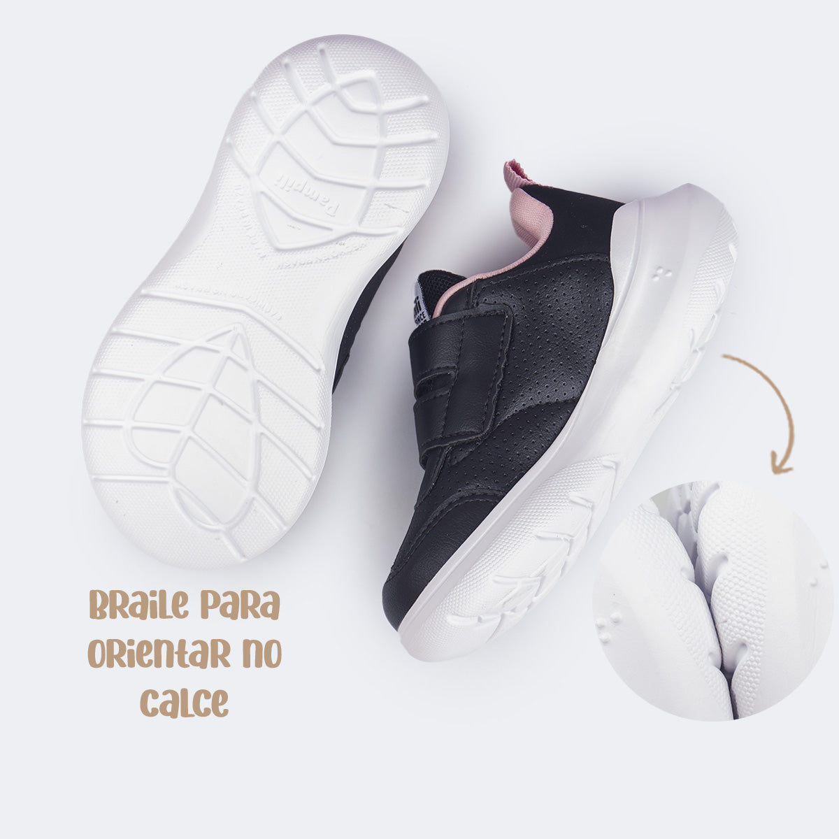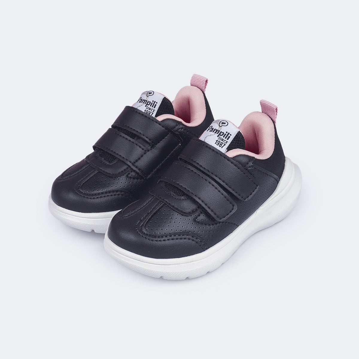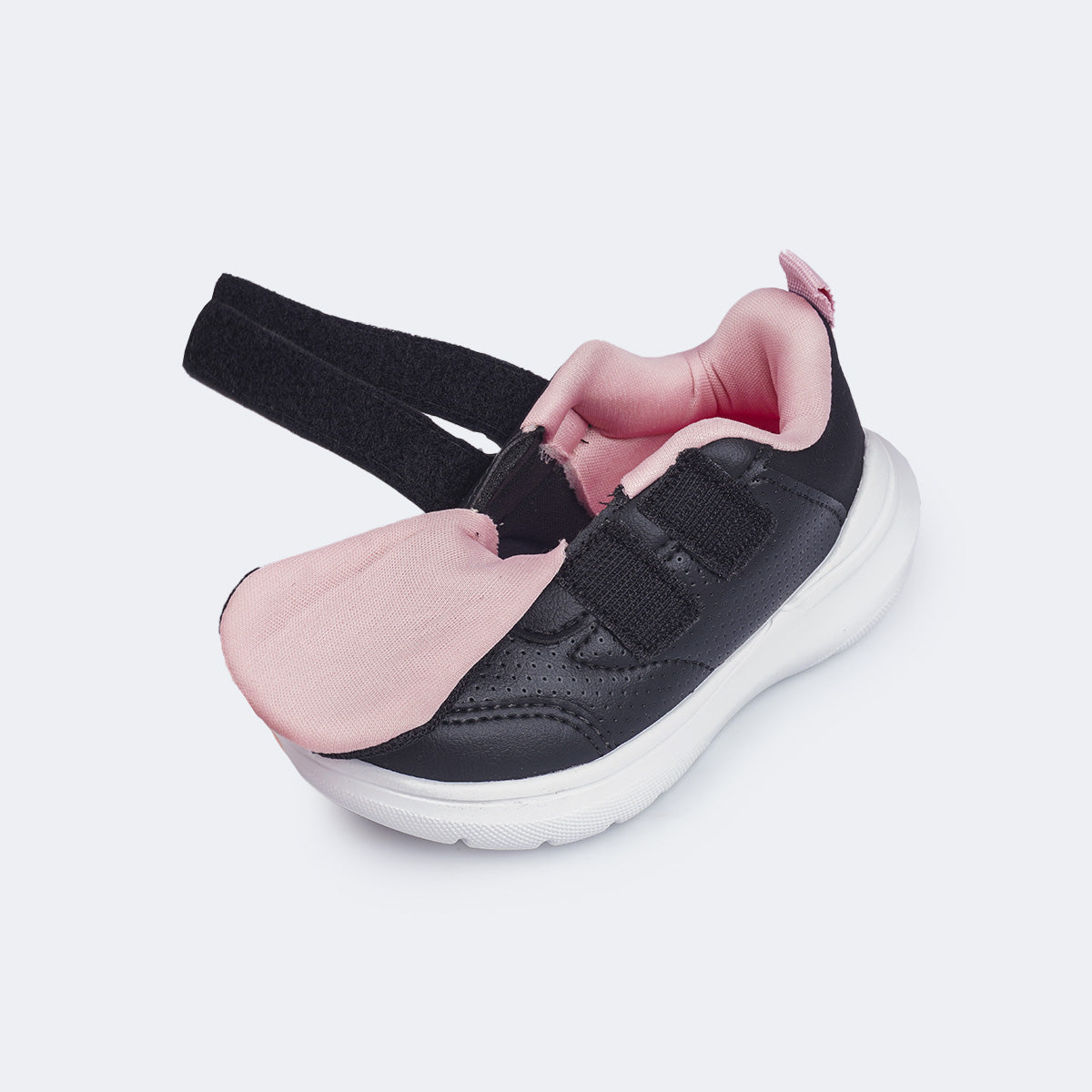 Ideal para a rotina escolar das meninas, esse tênis infantil foi pensado para oferecer conforto, segurança e praticidade desde os primeiros passos. O visual em preto com interior rosado é delicado e funcional, perfeito para acompanhar os dias com liberdade.