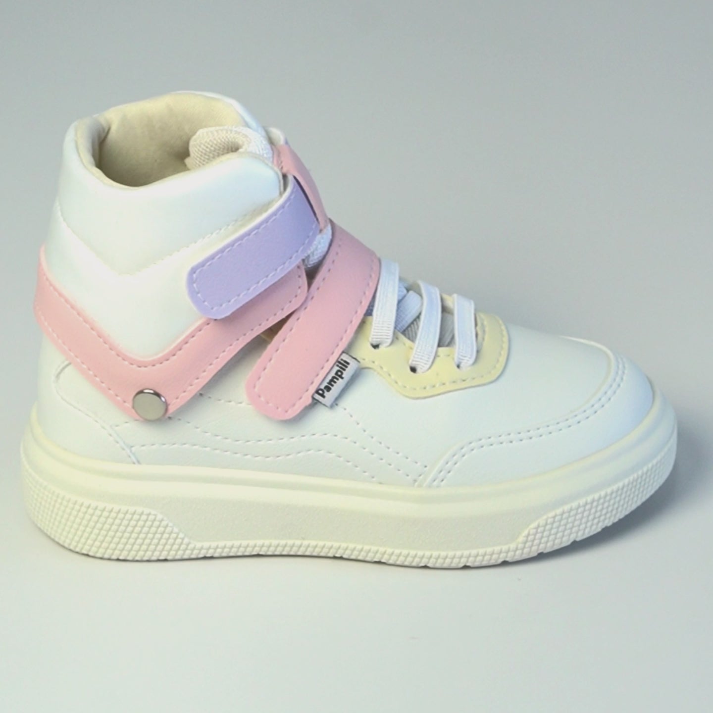 Tênis 2 em 1 Infantil Pampili Cano Alto Removível Branco Colorido