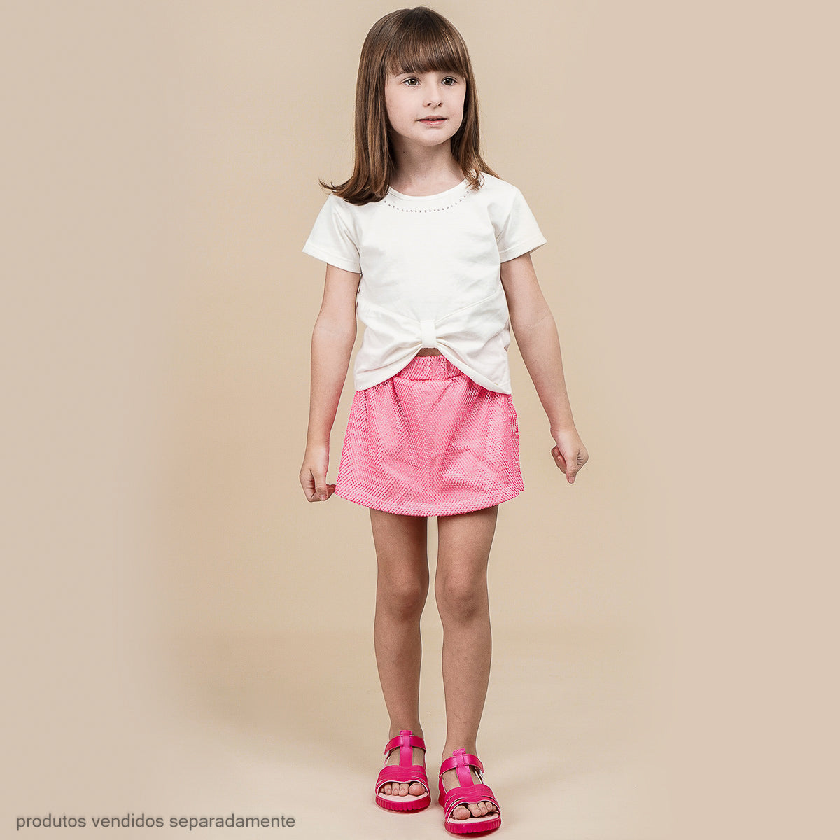 Camiseta off White infantil delicada para o dia a dia das meninas. Confeccionada em algodão, proporciona conforto e toque macio, ideal para acompanhar todas as brincadeiras. O destaque com laço deixa a parte frontal da peça um pouco mais curtinha, e junto aos brilhinhos aplicados na gola completam um visual ainda mais estiloso. Ideal para diversas ocasiões, do dia a dia a momentos especiais.