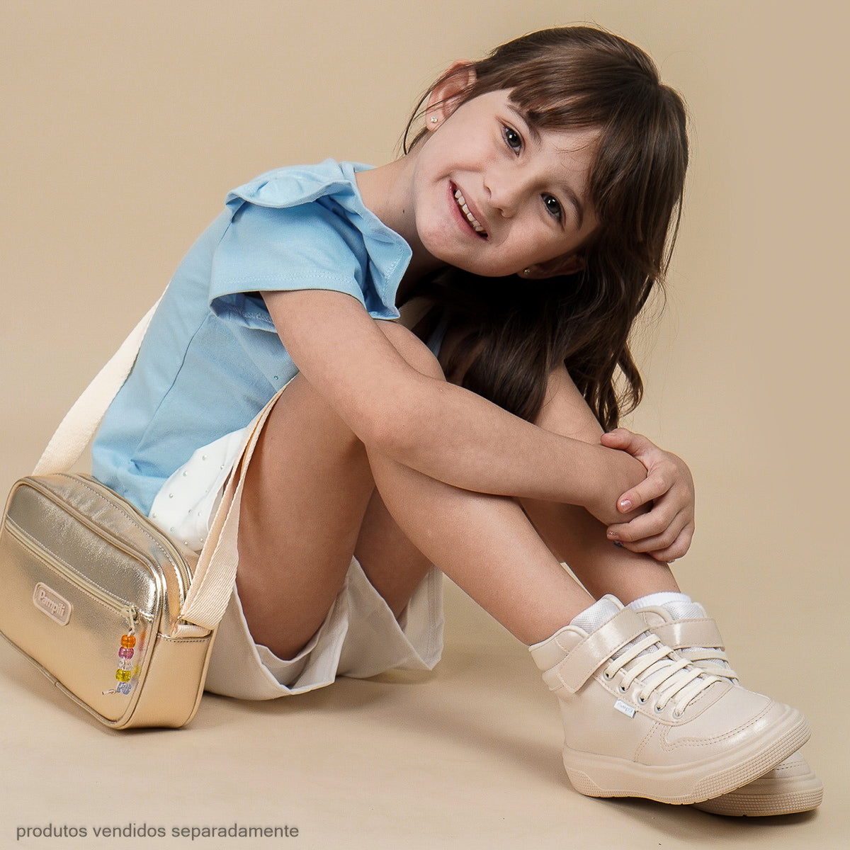 Camiseta azul claro infantil para menina confeccionada em algodão, fresquinha e com toque macio para acompanhar o dia a dia. As manguinhas com babado delicado e os strass aplicados na parte frontal trazem charme e iluminam a blusa com delicadeza. Uma peça versátil que vai do casual ao especial com muita leveza.