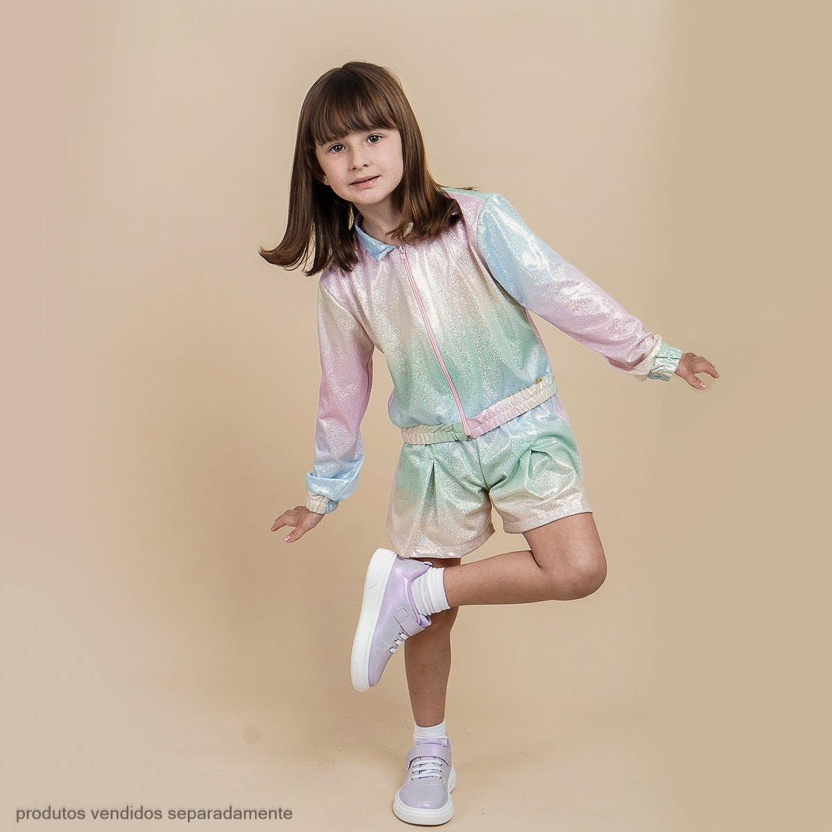Cheia de estilo, esta jaqueta degradê tie dye com brilho holográfico suave é o toque especial que faltava nas produções das meninas. Leve e confortável, tem fecho de correr e punhos com elástico para melhor ajuste. Ideal para sobrepor looks e deixar qualquer composição mais fashion e divertida. Uma peça versátil para transformar o visual em qualquer estação.