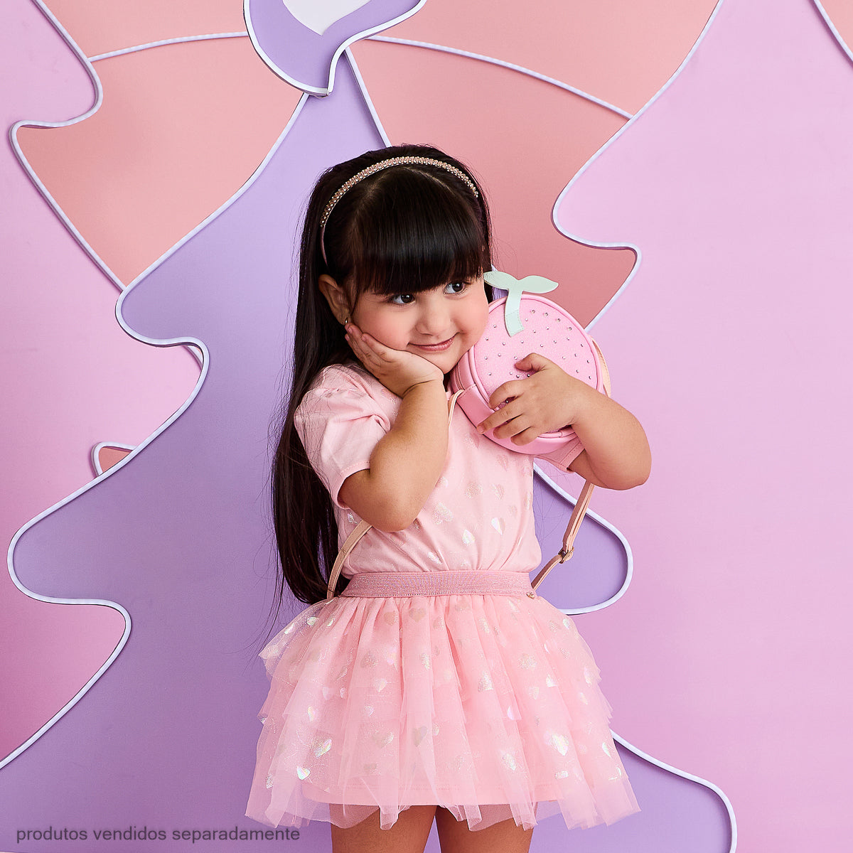 Produzida com materiais de fácil limpeza e acabamento resistente, possui forro em tecido macio, metais antioxidantes e alça regulável que se ajusta ao tamanho da menina. Ideal para carregar pequenos tesouros com muito estilo e praticidade.