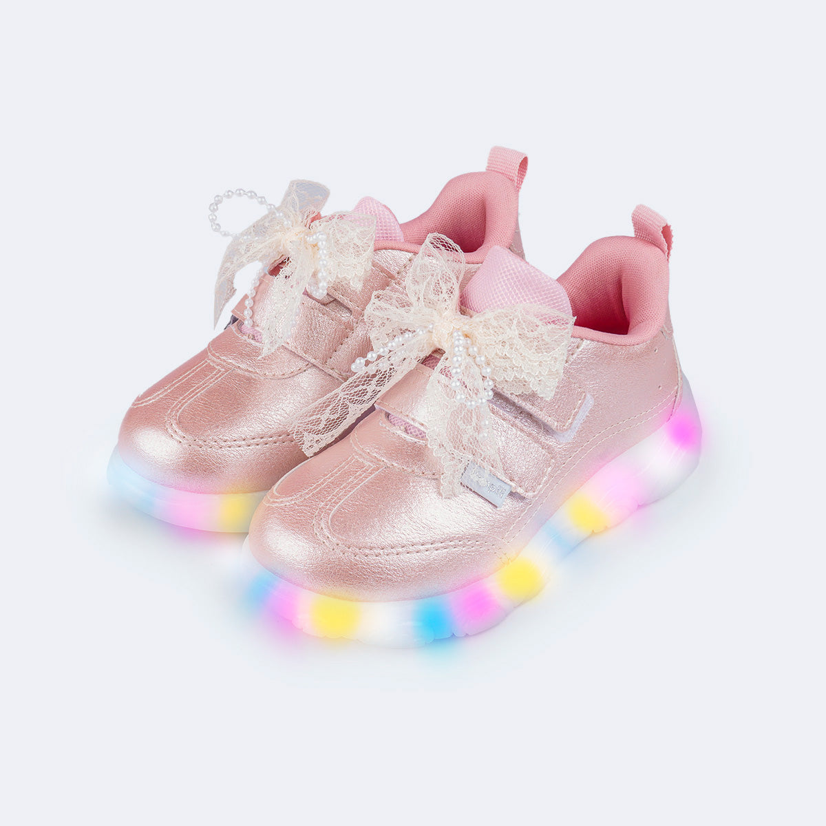 O solado translúcido antiderrapante garante estabilidade, além de trazer luzes de LED coloridas que acendem com o movimento, tornando cada passo mais divertido. Leve e confortável, este tênis é ideal para acompanhar a menina em diferentes momentos, unindo estilo, bem-estar e praticidade em um único modelo.