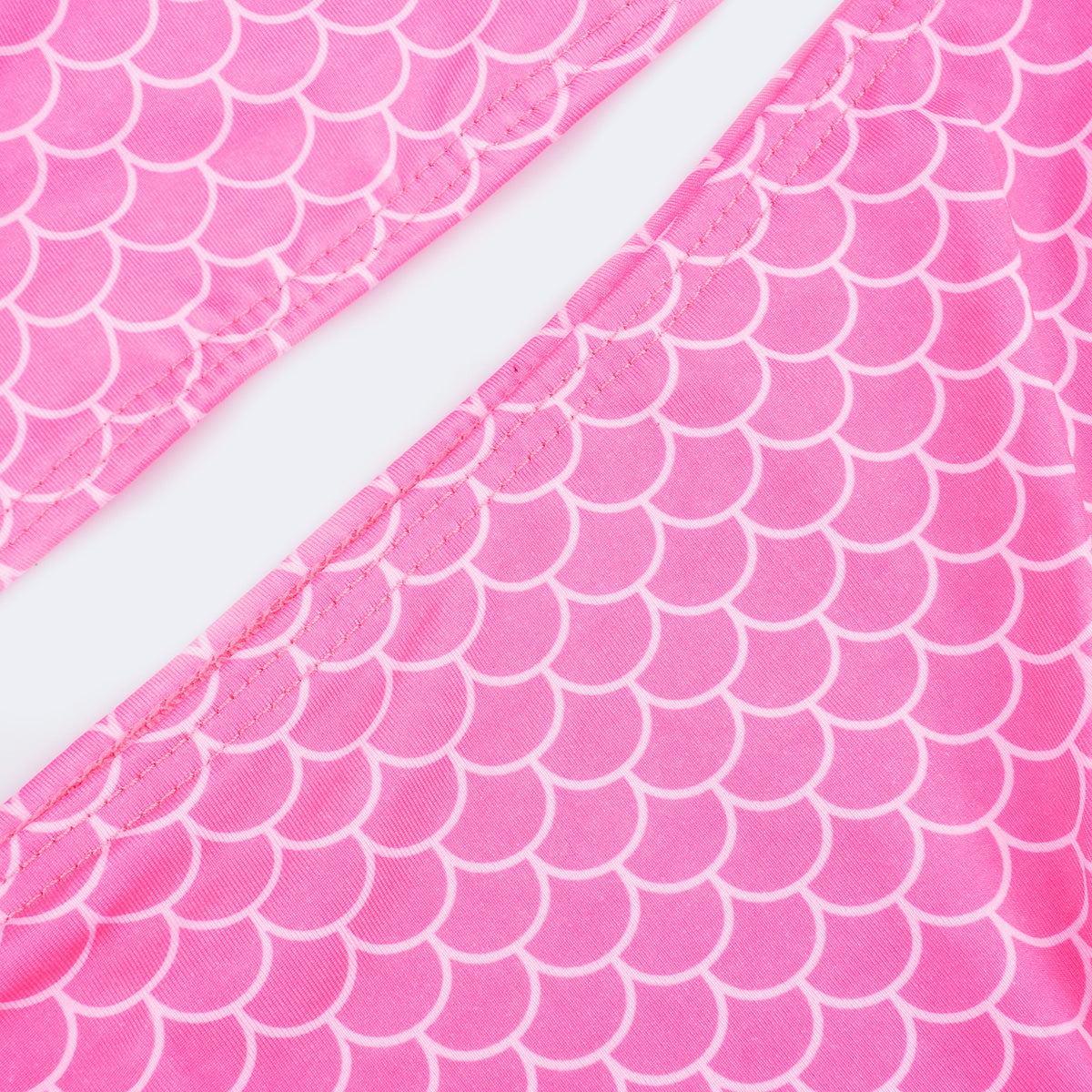 Conjunto biquíni infantil rosa com top modelo frente única com amarração, permitindo regulagem e ajuste personalizado. A estampa com escamas de sereia deixam o visual lúdico, enquanto a calcinha segue o mesmo padrão, completando o look de verão.