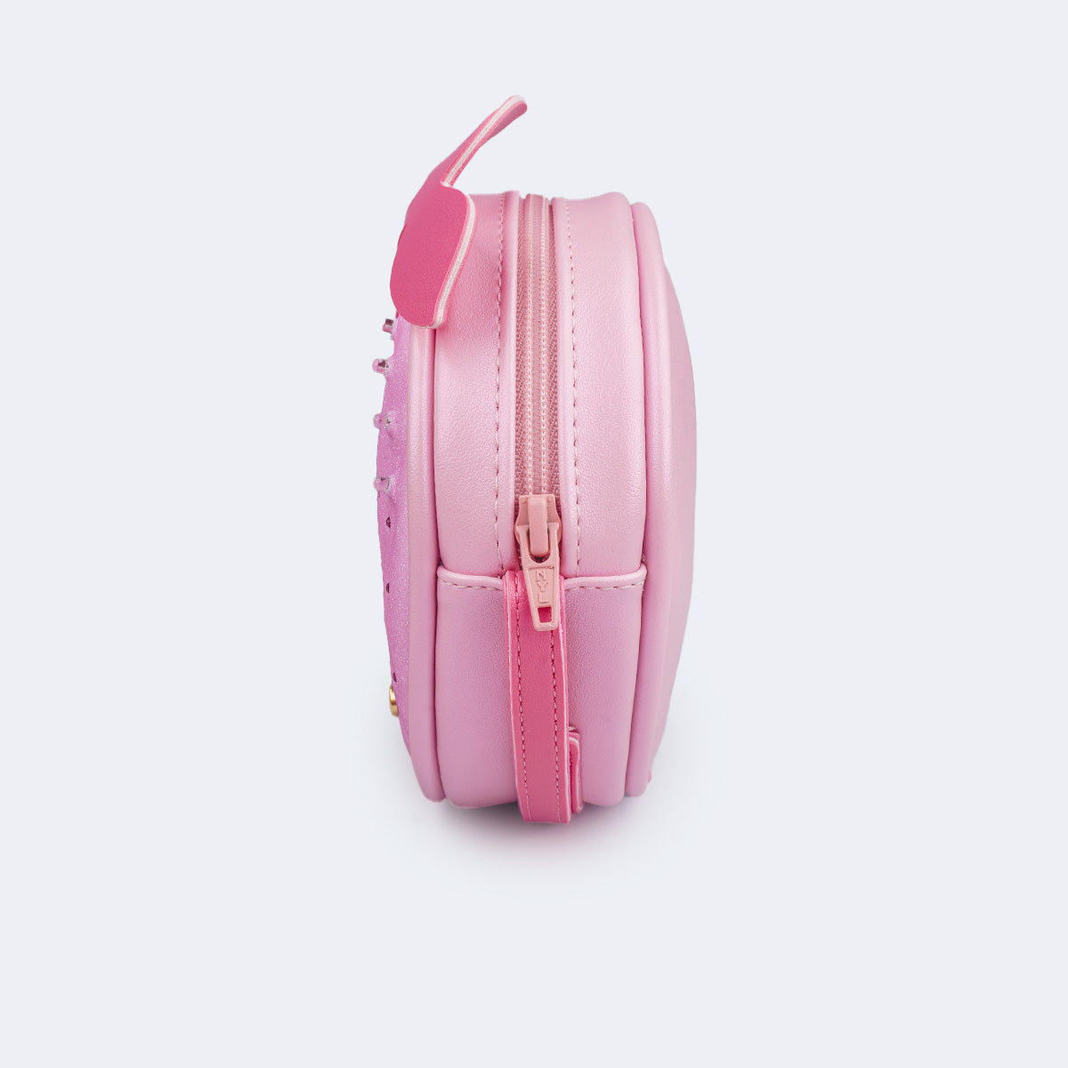 Produzida com materiais de fácil limpeza e acabamento resistente, possui forro em tecido macio, metais antioxidantes e alça regulável que se ajusta ao tamanho da menina. Ideal para carregar pequenos tesouros com muito estilo e praticidade.