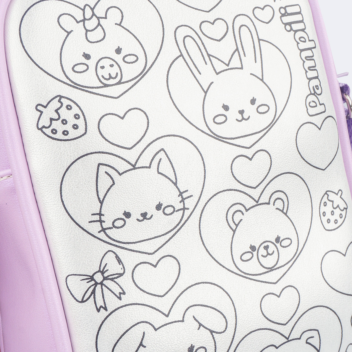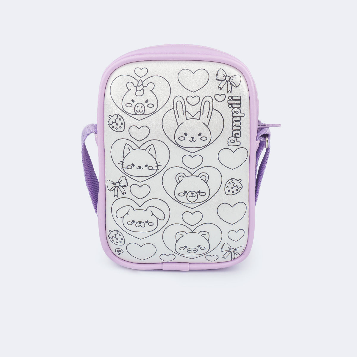 Divertida e cheia de charme! A bolsa Pamp Colors é perfeita para acompanhar as meninas em todo o dia. Seu design retangular com estampa de bichinhos e corações que podem ser coloridos, trazem um toque lúdico e criativo, despertando a imaginação e deixando qualquer look mais alegre.
