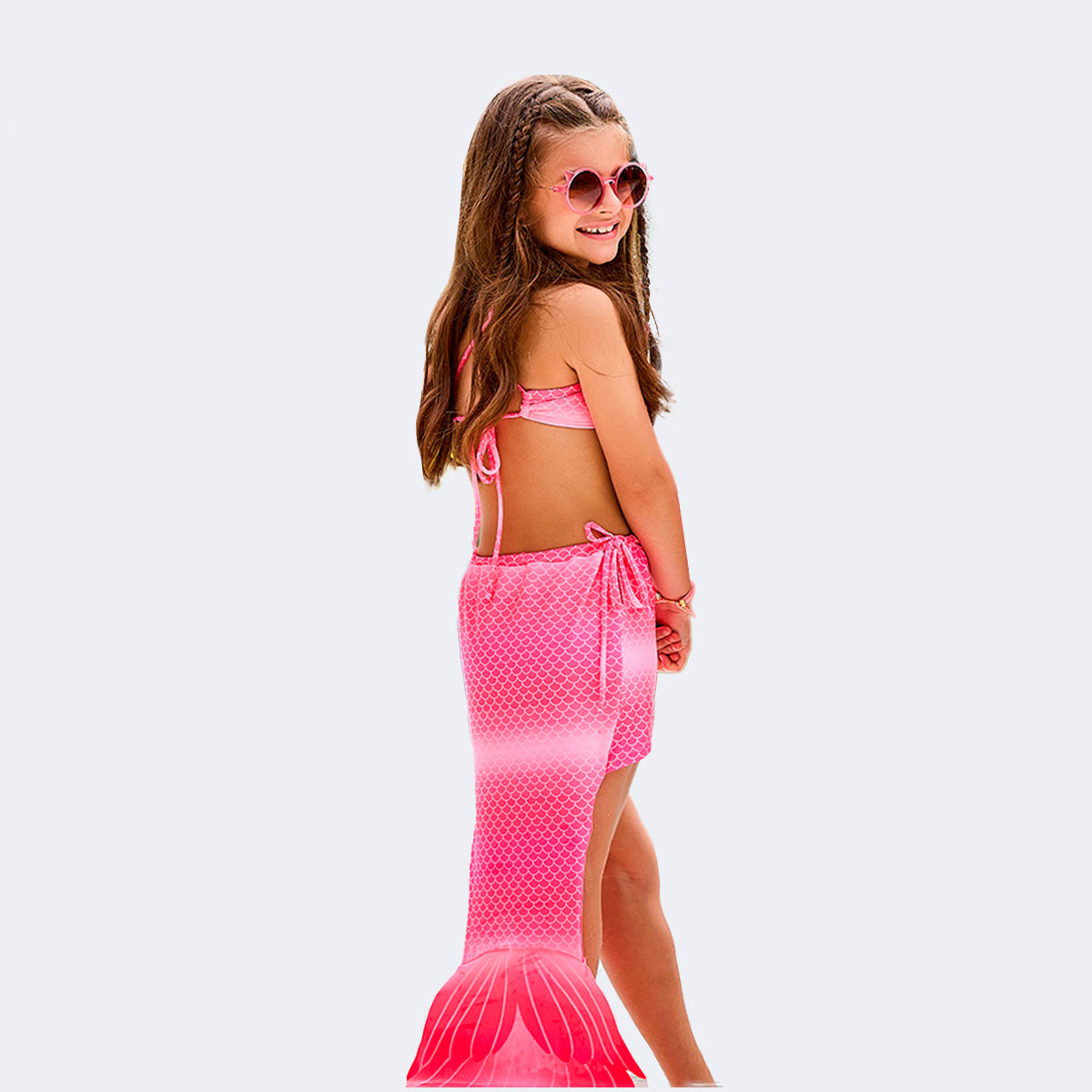 A saia biquíni de sereia foi criada para meninas que amam imaginar e brincar com o universo mágico do mar. Em tom rosa vibrante, o tecido conta com estampa de escamas e cauda fluida que imita o movimento de uma sereia, tornando o visual lúdico e encantador.