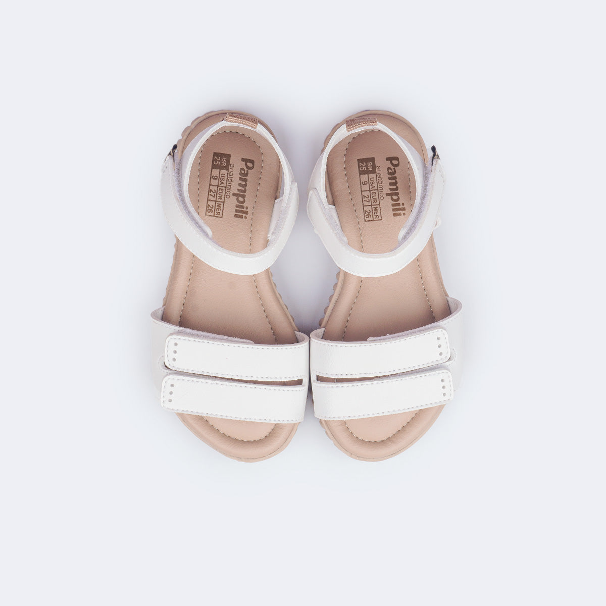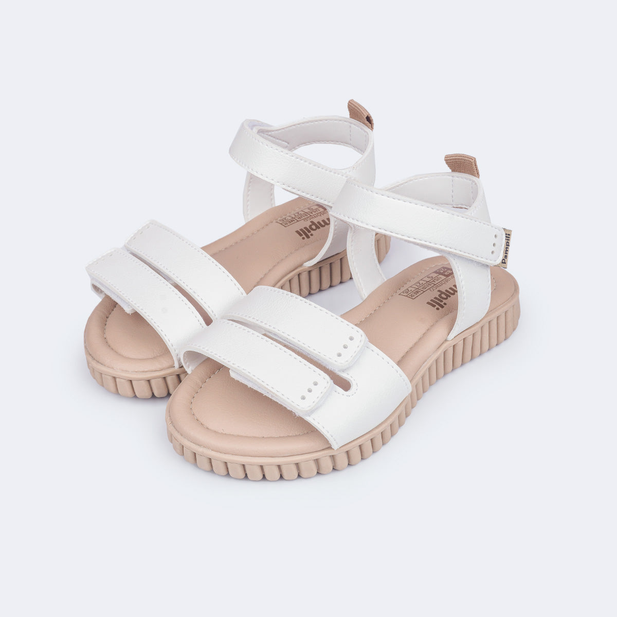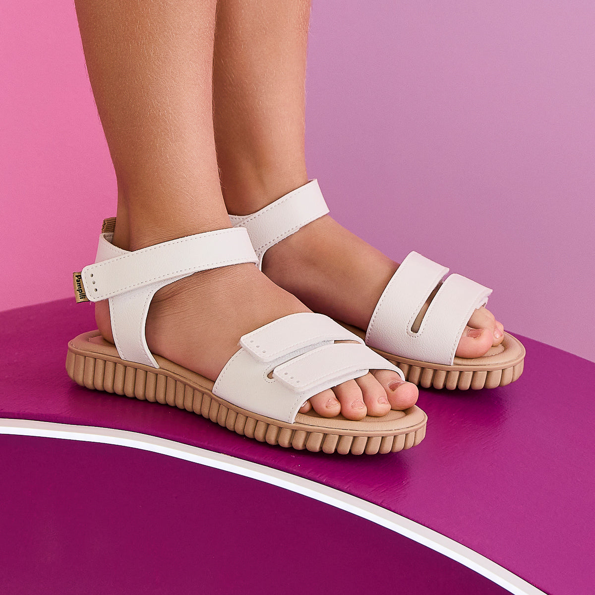 Delicada e versátil, esta sandália casual branca foi pensada para garantir conforto e liberdade de movimento no dia a dia das meninas. O modelo traz três fechos de contato – dois na parte frontal e um no tornozelo – que facilitam o calce e asseguram ajuste firme, além de oferecer sustentação macia ao calcanhar.