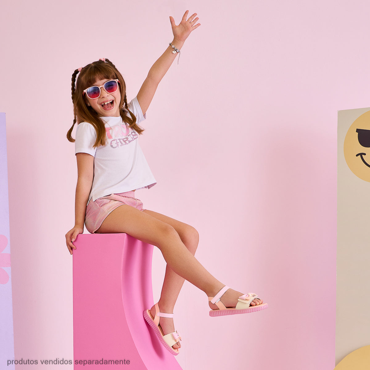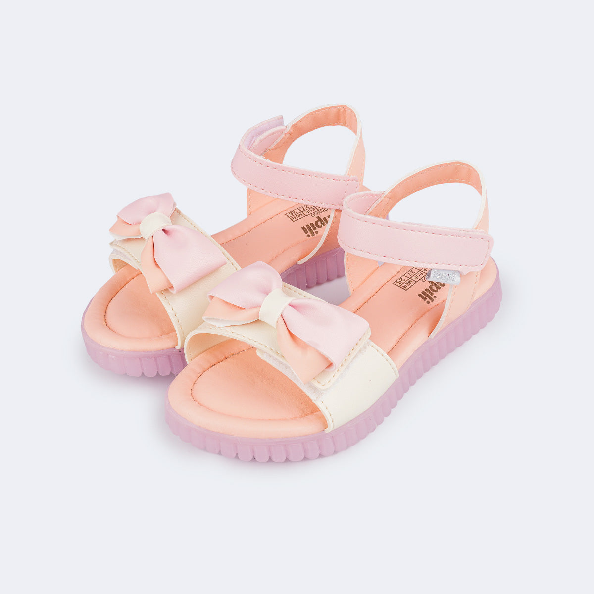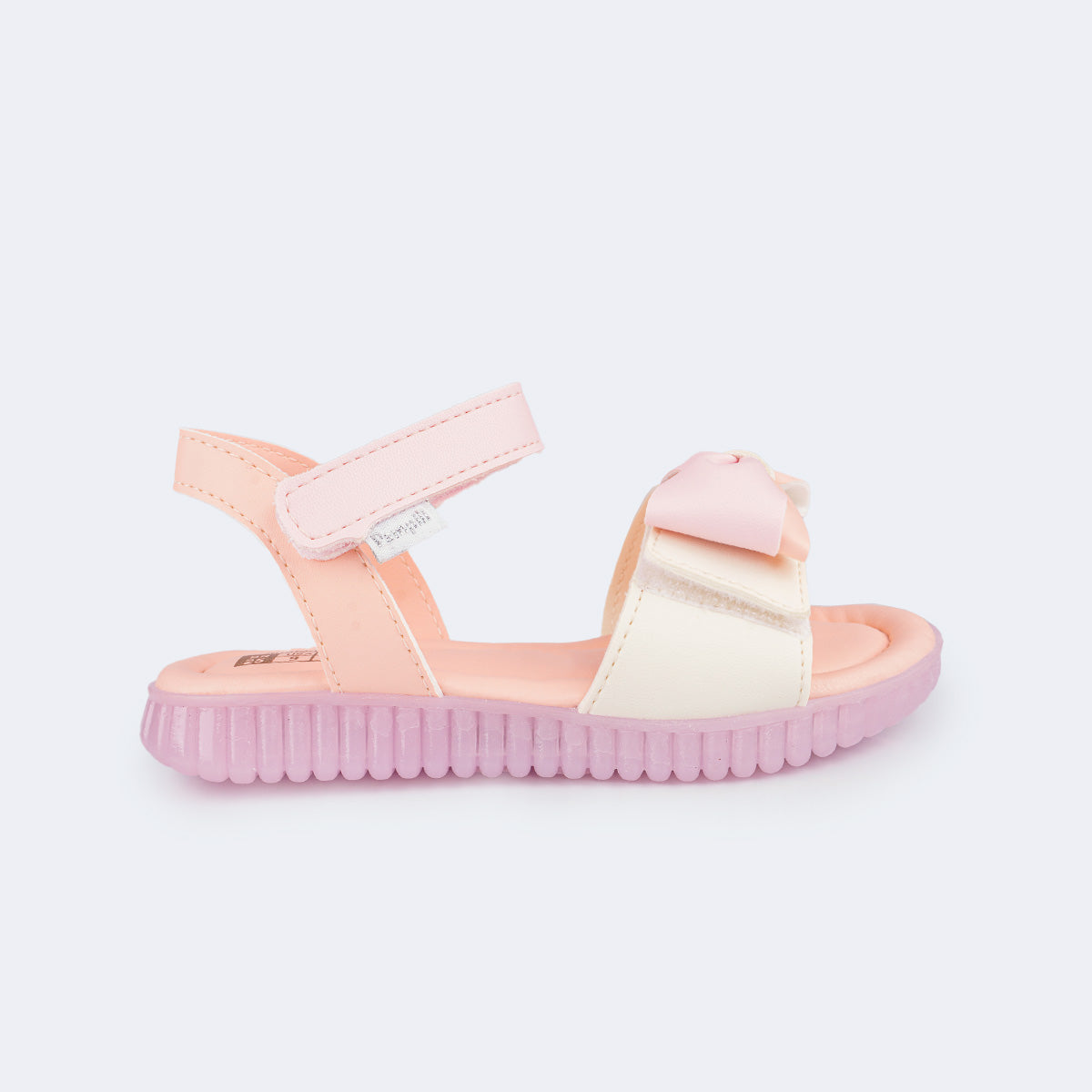 A sandália perfeita para acompanhar a rotina da sua menina! Com design colorido delicado nas cores rosa, laranja e amarelo flúor, essa sandália é leve, prática e encantadora. O destalhe do laço delicado na parte frontal, traz um toque fashion e feminino ao visual. Modelo super confortável e fácil de combinar!