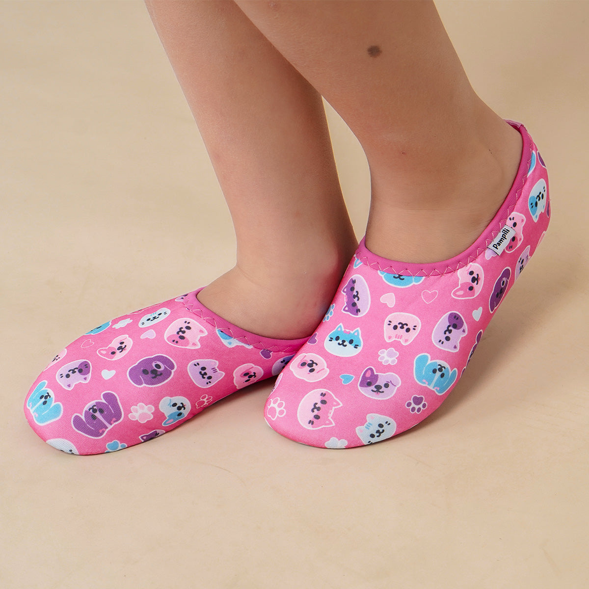 Com estampa de pets coloridos com fundo rosa, traz um charme especial ao visual. Ideal para o lazer em casa substituindo meias ou chinelos e também para a moda praia, podendo ser usada antes, durante e depois dos mergulhos, mantendo os pés protegidos com estilo.