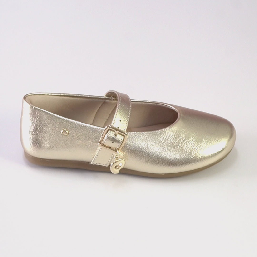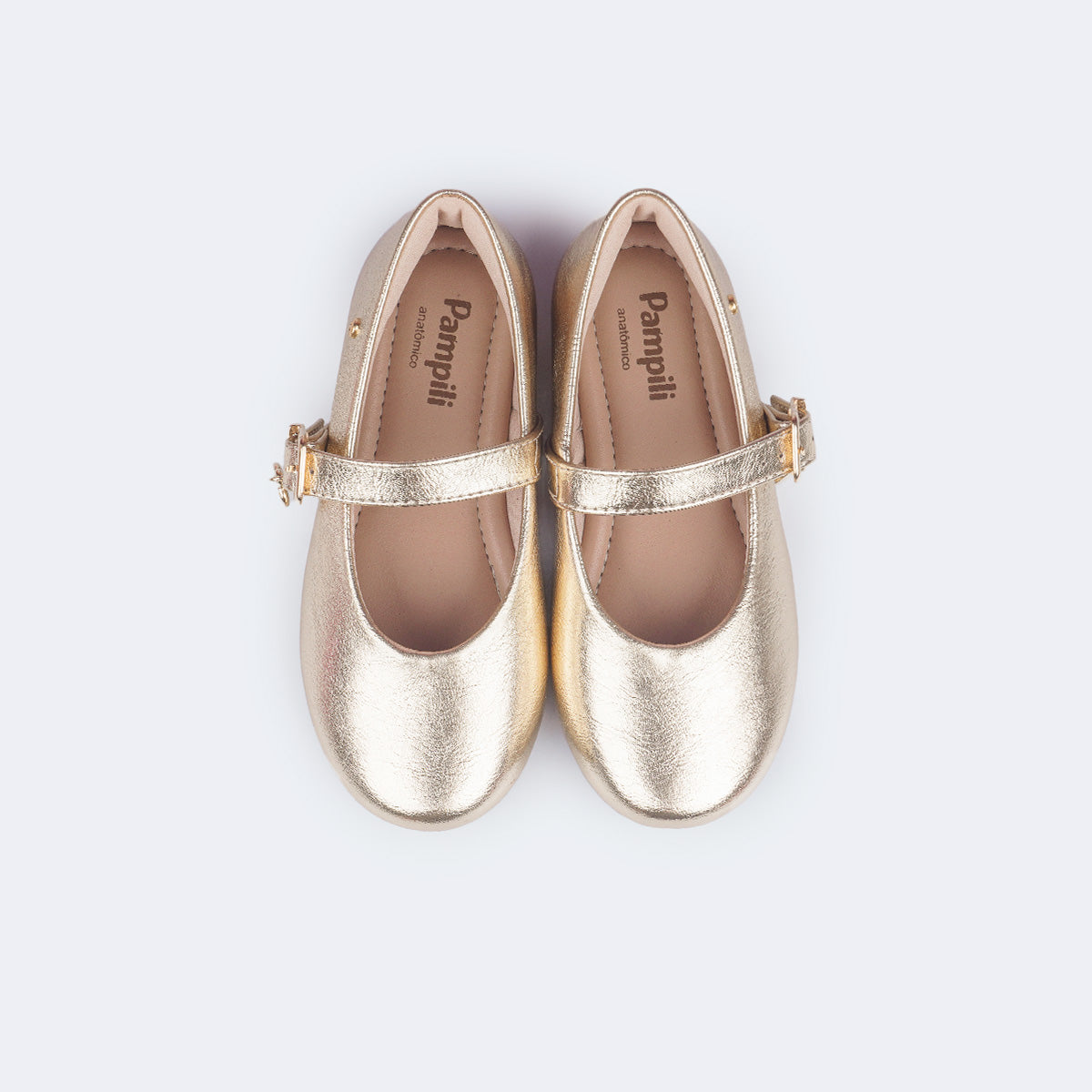 Sapatilha Infantil Pampili Vanila Fivela com Pingente Dourada