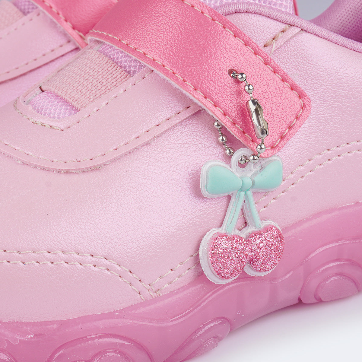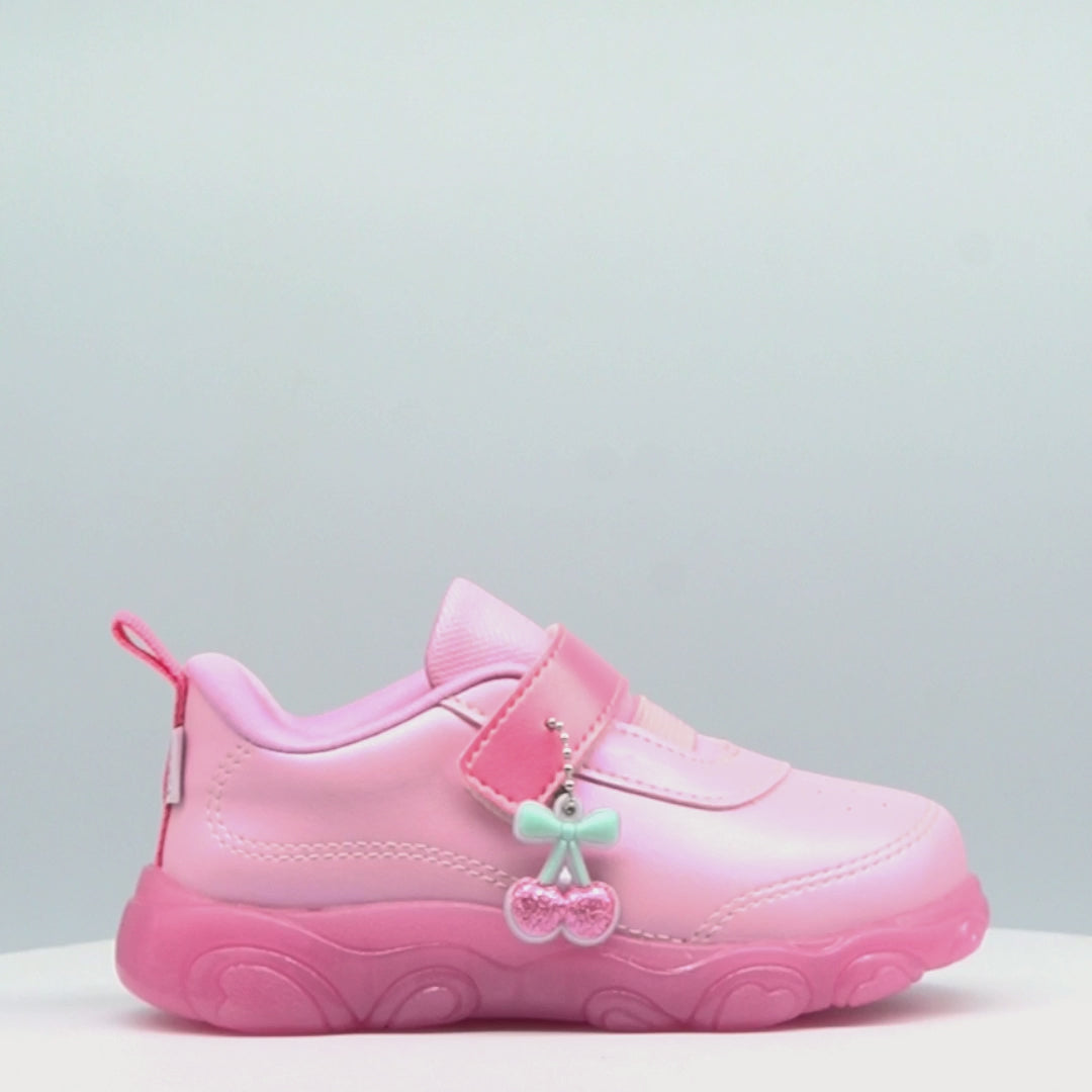 Cheio de delicadeza e diversão, esse tênis de led é perfeito para acompanhar as meninas em cada descoberta! Com design levemente perolado em tons de rosa, o modelo traz um solado antiderrapante translúcido com luzes de LED coloridas que se acendem a cada passo e um charmoso pingente de cerejinha com glitter, deixando o visual ainda mais encantador.