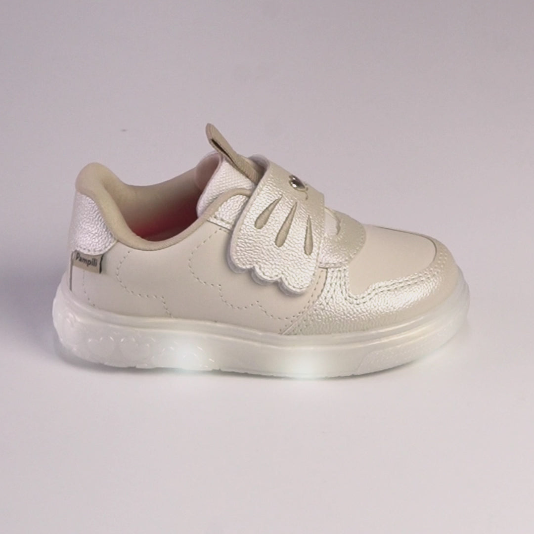 Por dentro, o conforto é completo, o modelo conta com colarinho super macio, forro absorvente de suor e palmilha anatômica que juntos cuidam dos pezinhos com suavidade. O destaque fica no solado translúcido antiderrapante com luzes de led brancas, que acendem ao caminhar em ritmos diferentes, deixando cada passo mais divertido.