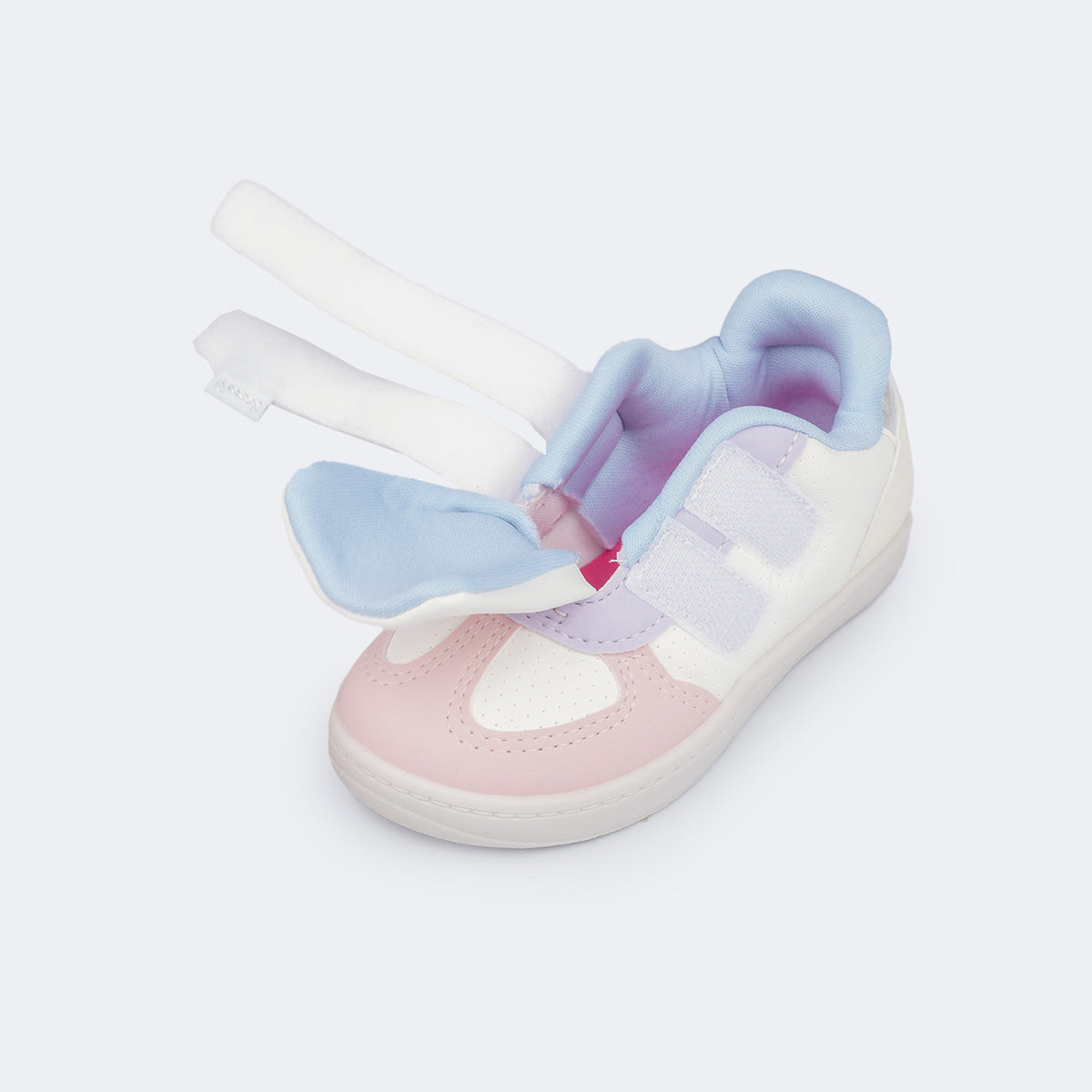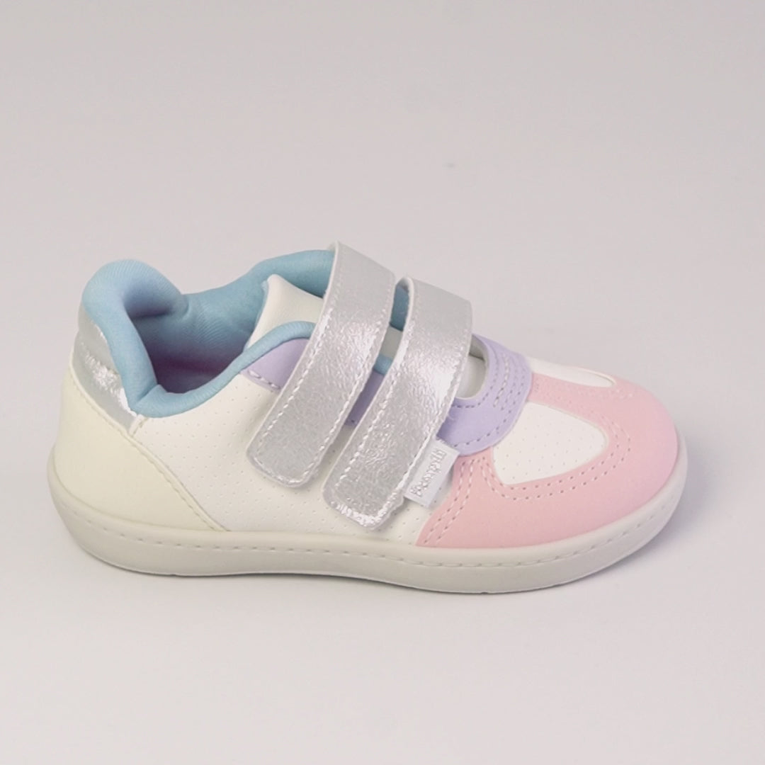 O design casual candy color, colorido, é versátil e perfeito para o uso diário. O material de fácil limpeza, aliado ao fecho de contato promove autonomia desde cedo. O colarinho macio, o forro absorvente e a palmilha anatômica garantem conforto prolongado, enquanto o solado flat antiderrapante com identificação em braile oferece segurança e flexibilidade para a rotina da menina, além de promover inclusão desde cedo.