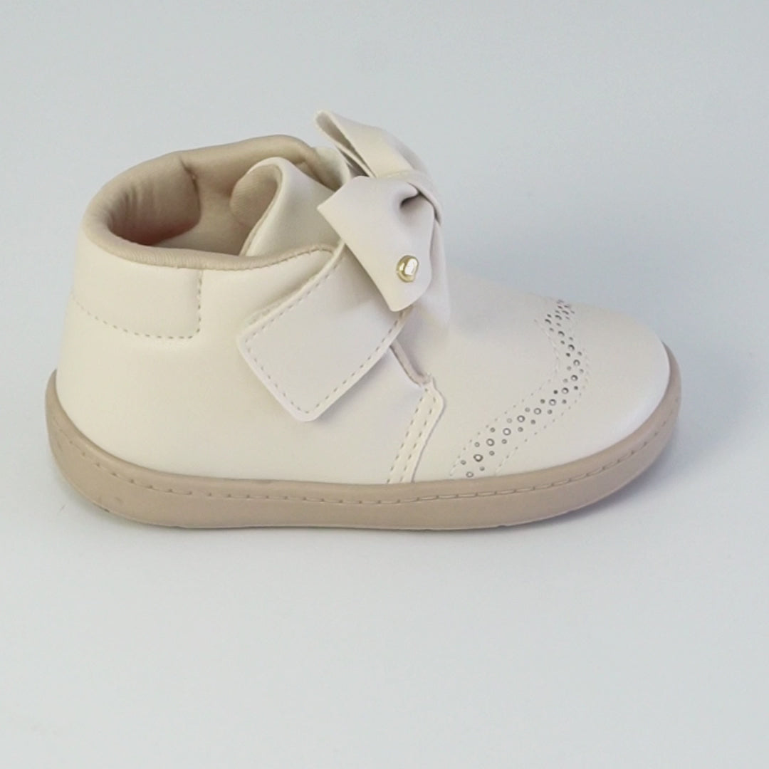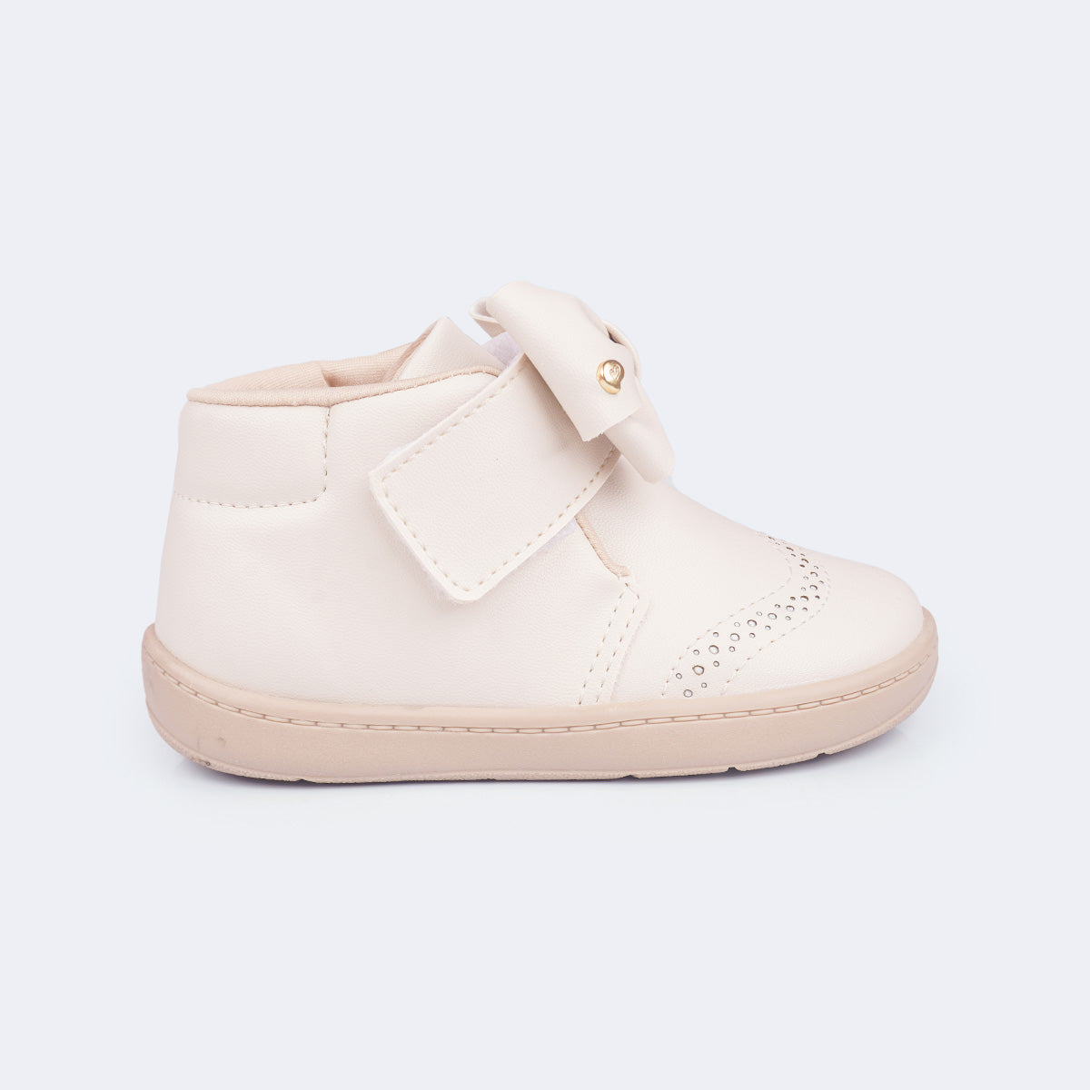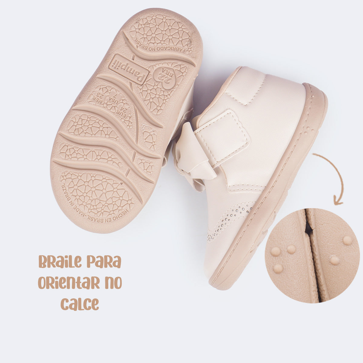 O design clássico e versátil com cano médio é perfeito para o uso diário e para montar looks mais arrumadinhos. O material de fácil limpeza, aliado ao fecho de contato com laço promove autonomia desde cedo. O colarinho macio, o forro absorvente e a palmilha anatômica garantem conforto prolongado, enquanto o solado flat antiderrapante com identificação em braile oferece segurança e flexibilidade para a rotina da menina.
