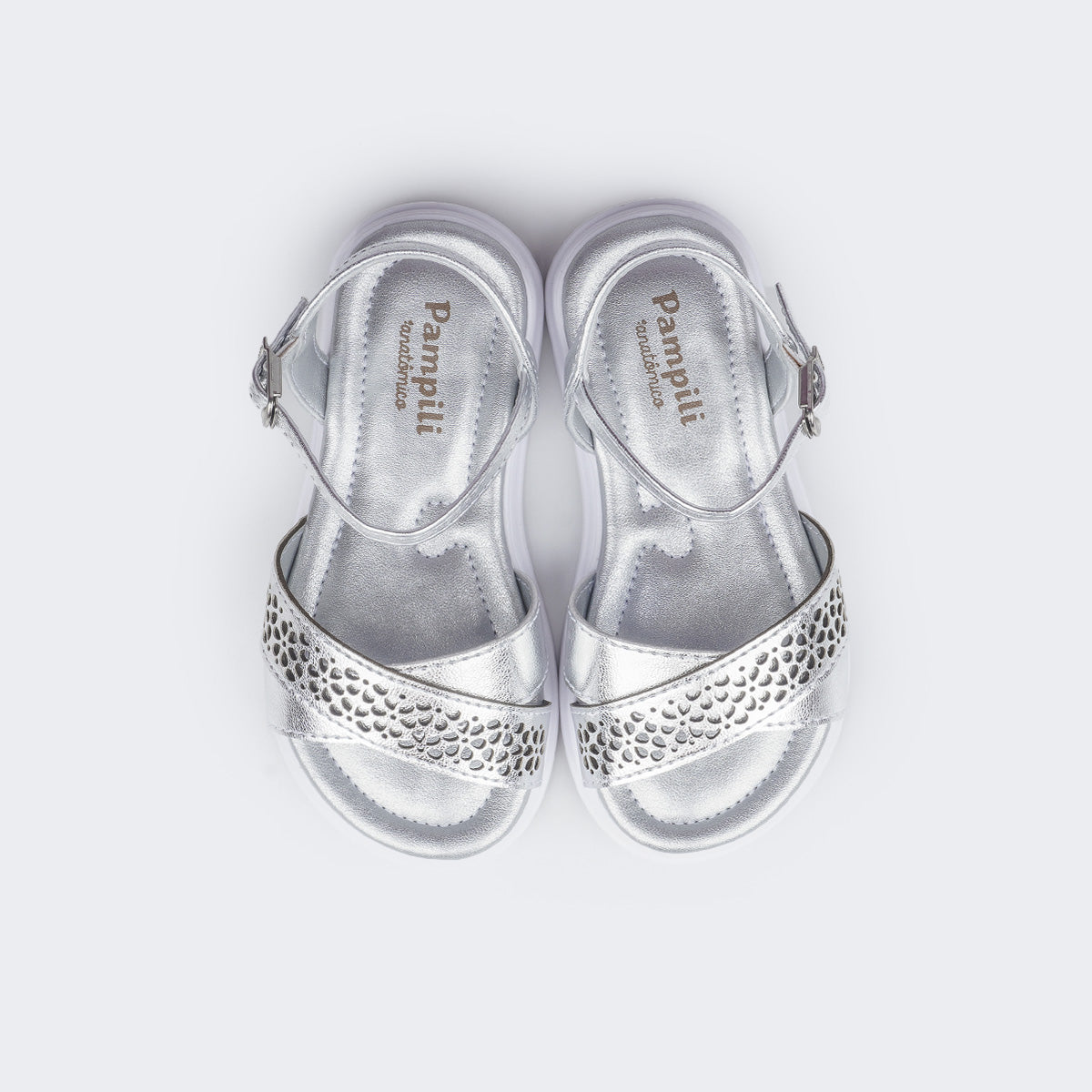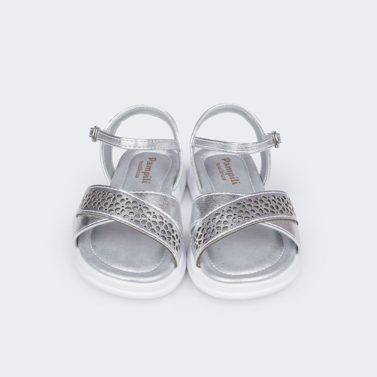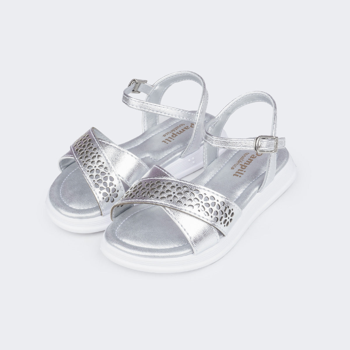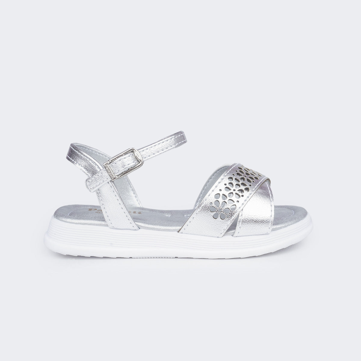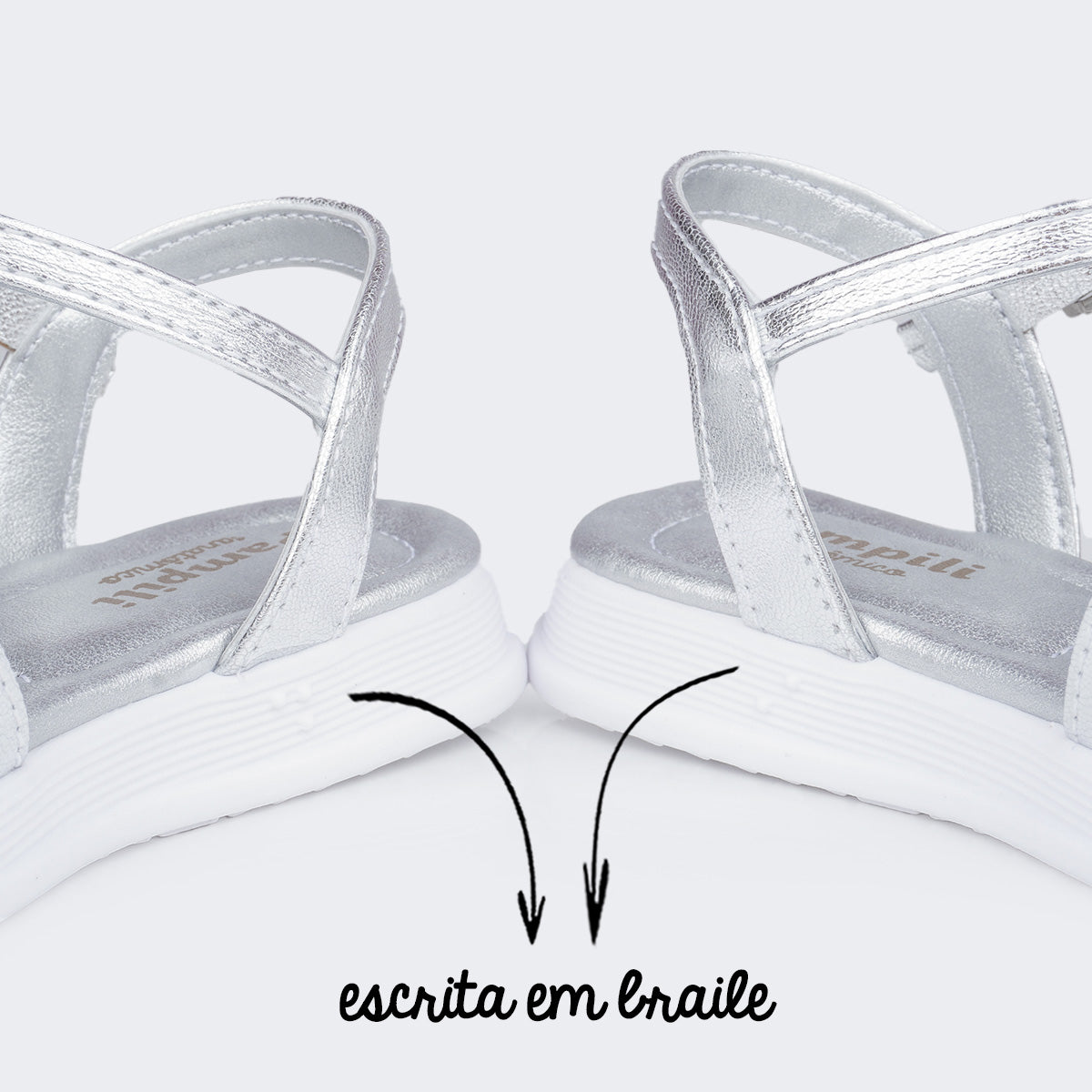 Sandália infantil feminina em material sintético prata com tira de flores vazadas por corte a laser, delicada e confortável para todos os momentos. Sandália com palmilha anatômica, proporcionando conforto e segurança aos pezinhos. Solado com pequena elevação em micro expandido, material leve com muita aderência e estabilidade, além da flexibilidade, resistência térmica e alto desempenho antiderrapante. Sandália infantil com calce através de fivela easy, sem pino, muito prática para a autonomia das meninas ao calçar! A sandália vem com escrita em braile nas laterais, mostrando o lado correto para as meninas cegas ou com baixa visão.