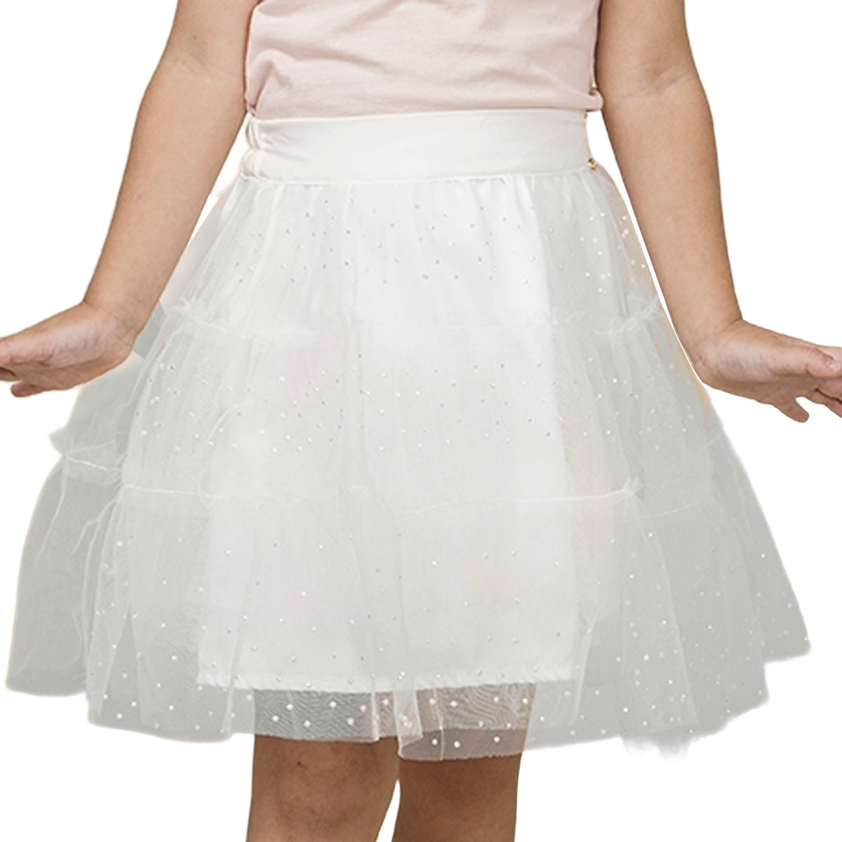 Essa saia de tule com brilho é ideal para ocasiões especiais e leva total encanto aos looks. Modelagem que as meninas amam para brincar e se divertir.