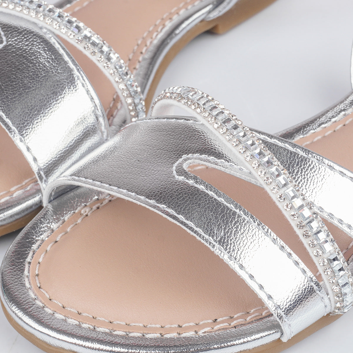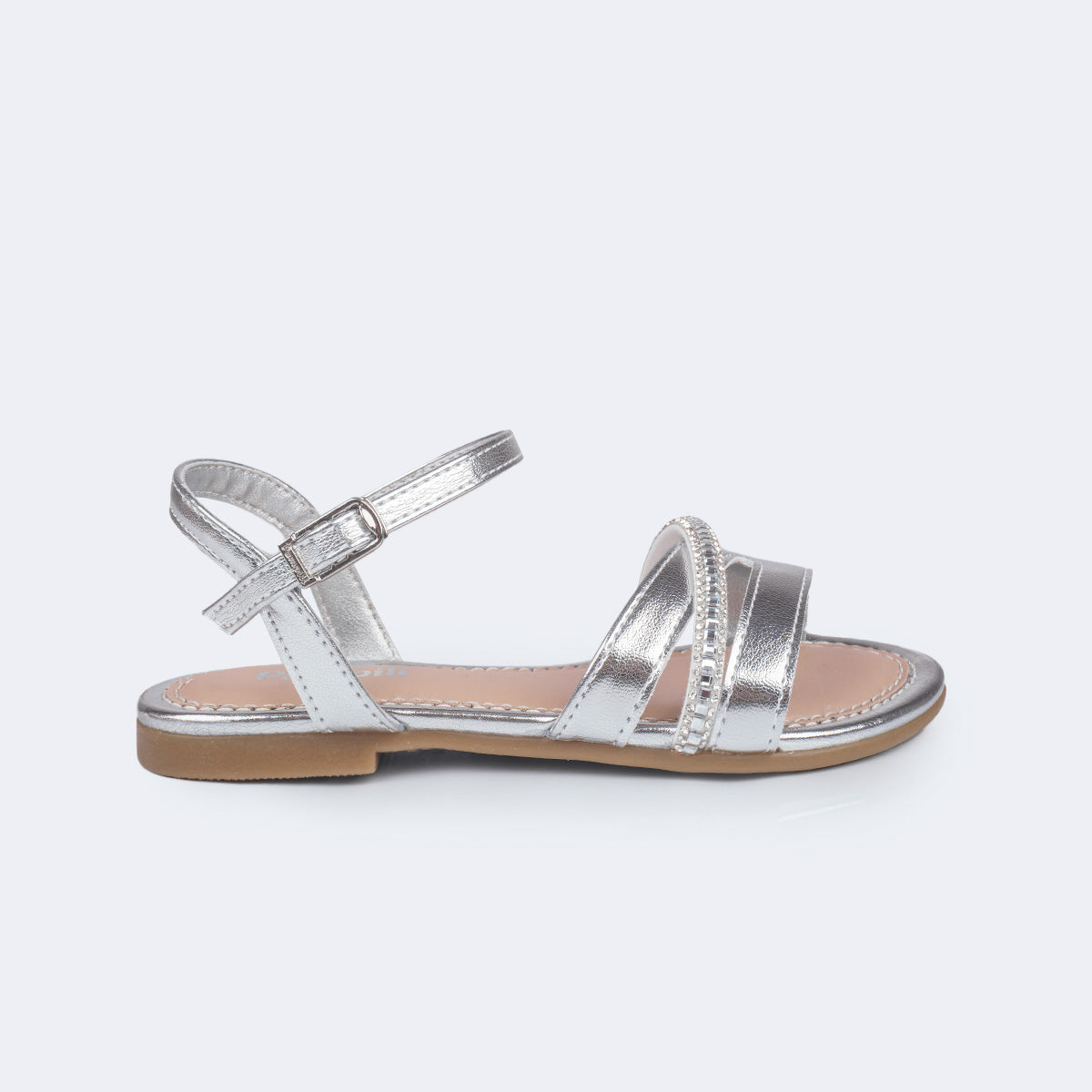 Charmosa e cheia de brilho, a sandália rasteira infantil prateada é perfeita para iluminar os looks das meninas com delicadeza. O acabamento metalizado traz um efeito sofisticado, enquanto as tiras frontais ganham destaque com aplicação de strass que adiciona um toque glam na medida certa. Ideal para festas, celebrações e momentos especiais, sem abrir mão do conforto. O modelo conta com fechamento em fivela easy, palmilha macia que acomoda os pezinhos com suavidade e solado flexível antiderrapante que garante estabilidade e segurança em cada passo.