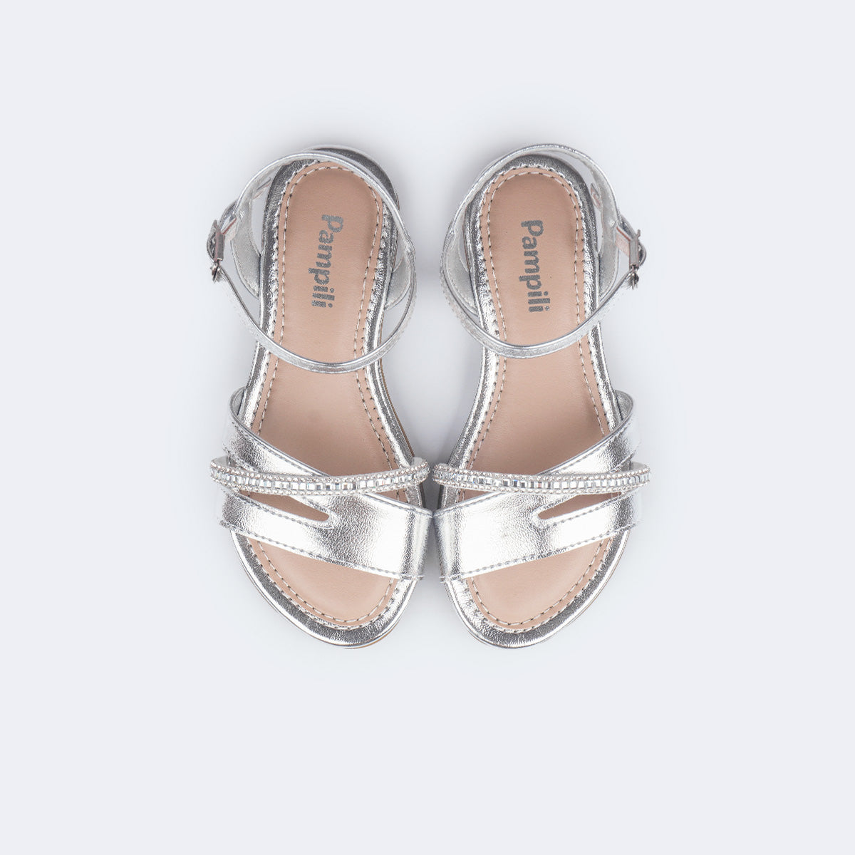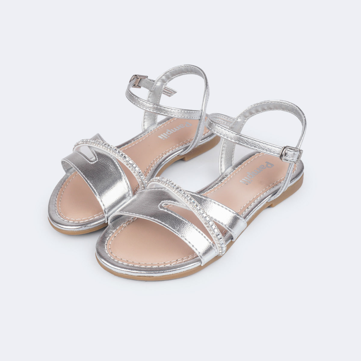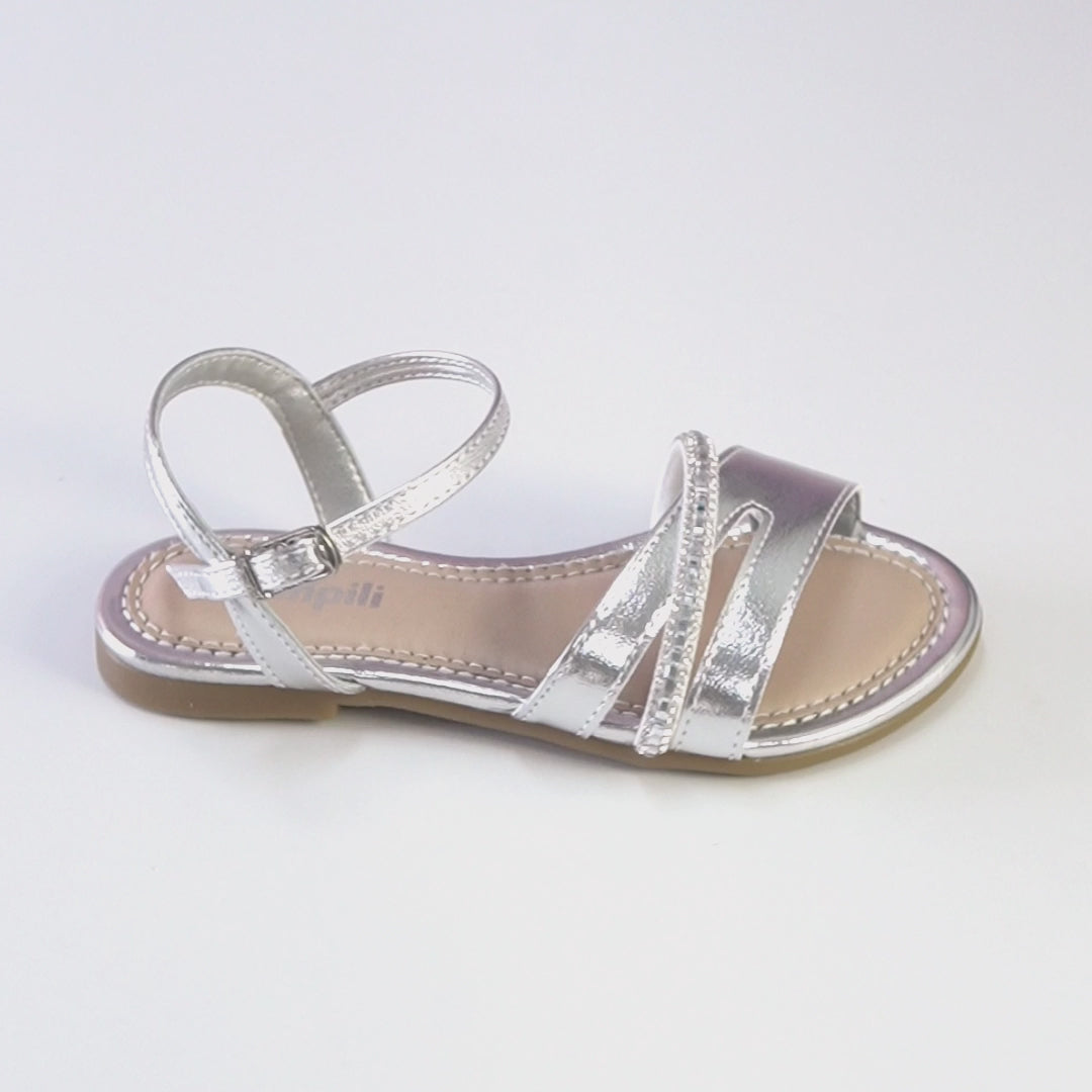 Sandália Infantil Pampili Cherrie Assimétrica com Strass Prata