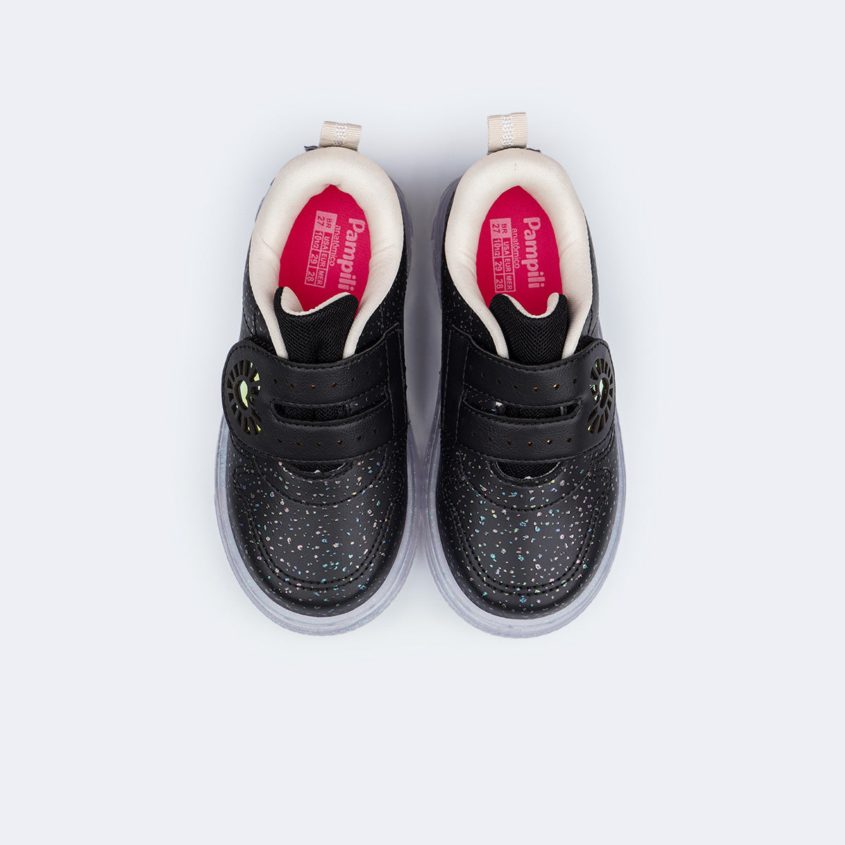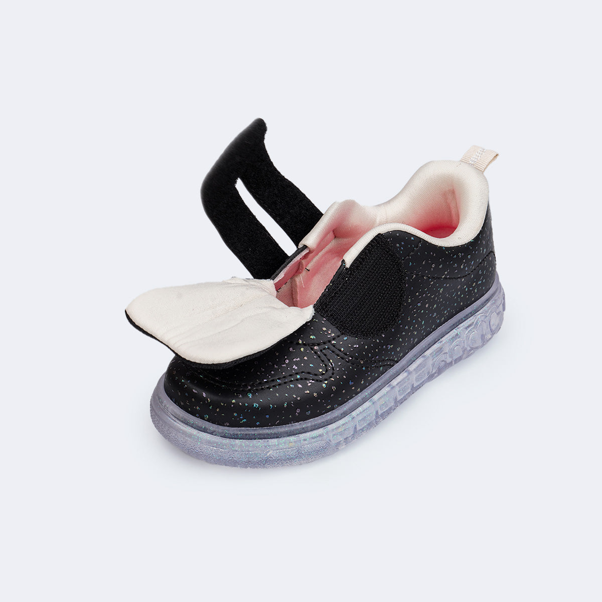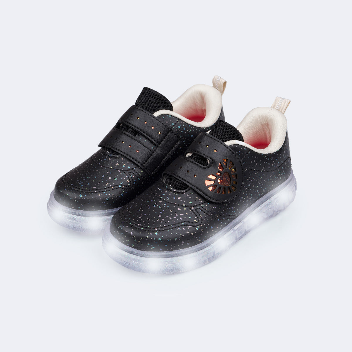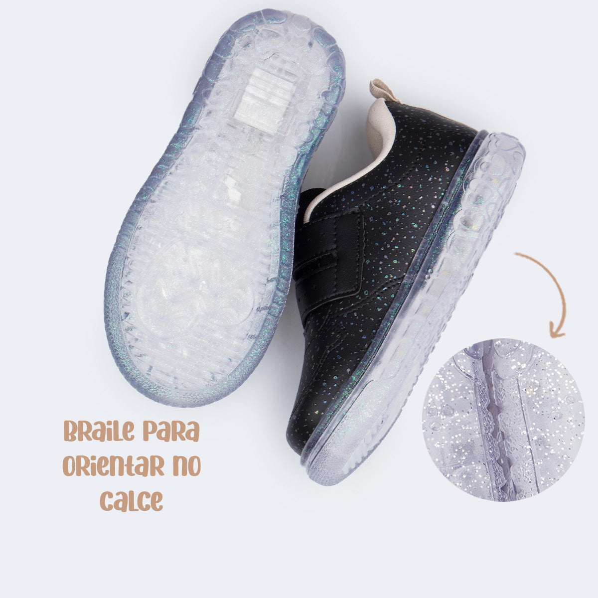 Tênis de Led Infantil Pampili Sneaker Luz Coração Holográfico Preto